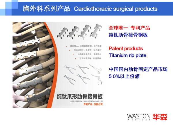 2002年:華森公司正式進(jìn)入骨科內(nèi)固定植入物行業(yè),成立華森骨科事業(yè)部;同期華森公司與在醫(yī)療電刀行業(yè)久副盛名的常州延陵電子有限公司合作進(jìn)入高端外科吻合器行業(yè),成立華森吻合器事業(yè)部;