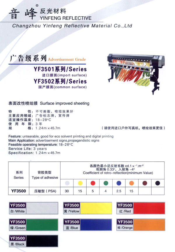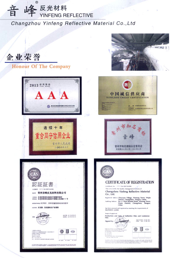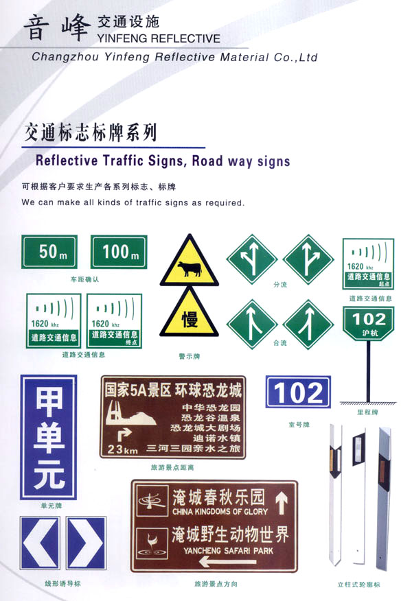 音峰集團(tuán)是一個(gè)多種經(jīng)營(yíng)的綜合性高科技股份公司,從事反光材料、交通安全設(shè)施、絲網(wǎng)印刷、揚(yáng)聲器、紡織等產(chǎn)品的研制開(kāi)發(fā)、生產(chǎn)銷售。公司自創(chuàng)立以來(lái),堅(jiān)持走科技發(fā)展的道路,以滿足客戶需求為公司宗旨,取得了令人矚目的經(jīng)濟(jì)效益和社會(huì)效益,使公司規(guī)模不斷擴(kuò)大。 音峰反光材料有限公司是音峰集團(tuán)下的一個(gè)新銳的子公司,主要從事系列反光材料及發(fā)光膜的研制和開(kāi)發(fā)。公司擁有國(guó)內(nèi)最先進(jìn)的生活殘?jiān)O(shè)備,最專業(yè)的研制、開(kāi)發(fā)人員,公司還投入了大量的資金,年產(chǎn)值達(dá)1.5億。 公司主生產(chǎn):廣告級(jí)反光膜、工程級(jí)反光膜、車牌級(jí)反光膜、高強(qiáng)級(jí)反光膜、廣告級(jí)反光雙色條、發(fā)光膜、噴繪反光膜、晶彩格、電信電力反光膜,鍍鋁膜等等..........根據(jù)國(guó)家指令法規(guī):反光材料的領(lǐng)域,如公路標(biāo)志、標(biāo)牌、標(biāo)線、礦山、鐵路等......... 反光膜廣泛應(yīng)用于各種廣告標(biāo)志牌,公路鐵路的導(dǎo)向牌、指示牌、地名牌、車牌,道路交通標(biāo)志,物業(yè)小區(qū)標(biāo)志,臨時(shí)施工標(biāo)志,廣告宣傳、安全防護(hù)、高等級(jí)公路的各種警示標(biāo)語(yǔ),標(biāo)識(shí)牌等。 公司堅(jiān)持以生產(chǎn)力標(biāo)準(zhǔn)衡量企業(yè)效益和員工業(yè)績(jī),堅(jiān)持“以人為本,提倡知人、容人、用人、培養(yǎng)人,使企業(yè)具有極強(qiáng)的凝聚力,在激勵(lì)的市場(chǎng)競(jìng)爭(zhēng)中保持旺盛的生命力!笨萍急WC品質(zhì),服務(wù)完善產(chǎn)品“是我們永遠(yuǎn)不變的信念。 隨著世界的發(fā)展,企業(yè)經(jīng)營(yíng)進(jìn)入了全球化時(shí)代,本著這一共識(shí),企業(yè)憑借自身的技術(shù)優(yōu)勢(shì),積極參加國(guó)際間合作與競(jìng)爭(zhēng),努力拓展國(guó)內(nèi)與國(guó)際市場(chǎng),公司愿與國(guó)內(nèi)外各界朋友在更廣泛的領(lǐng)域攜手合作,共同發(fā)展,共創(chuàng)繁榮。