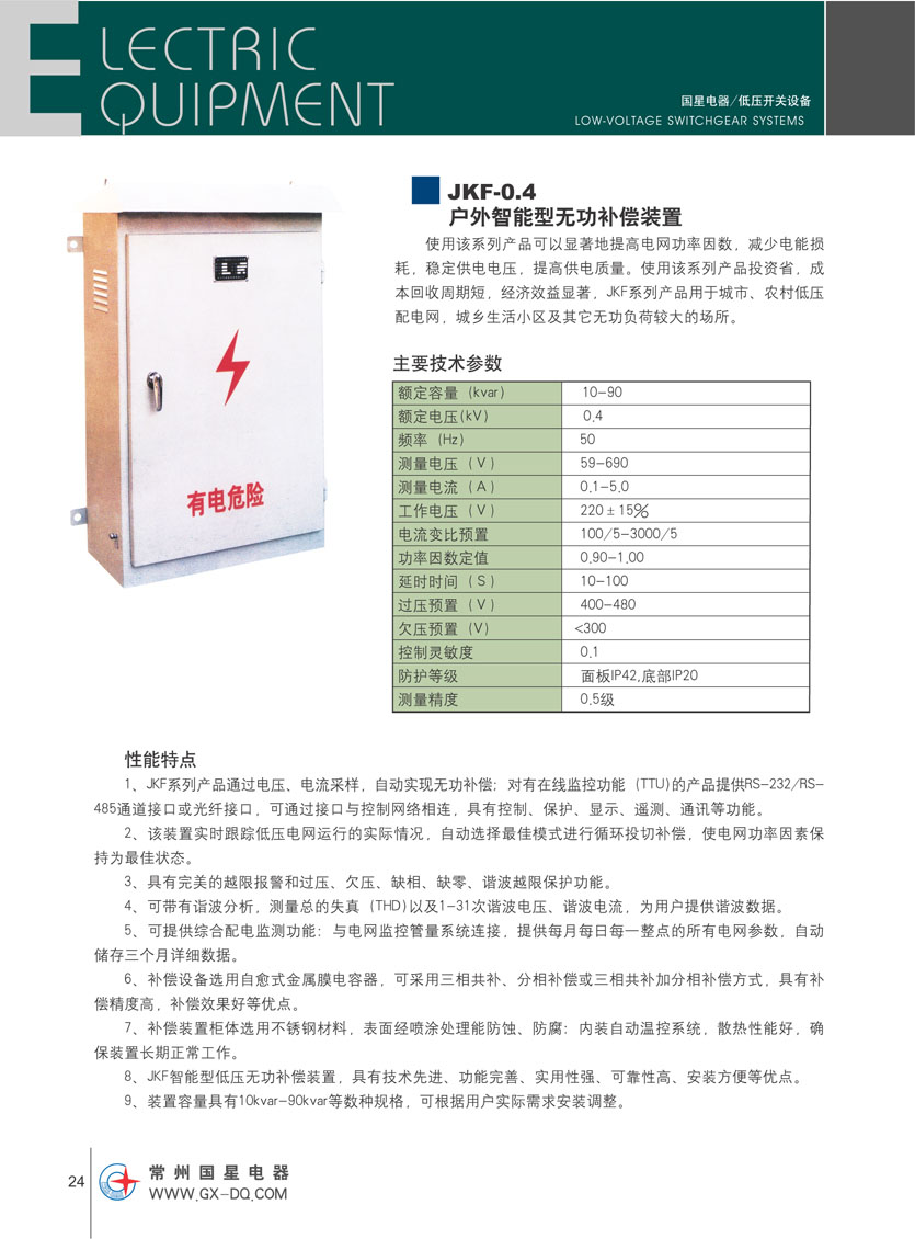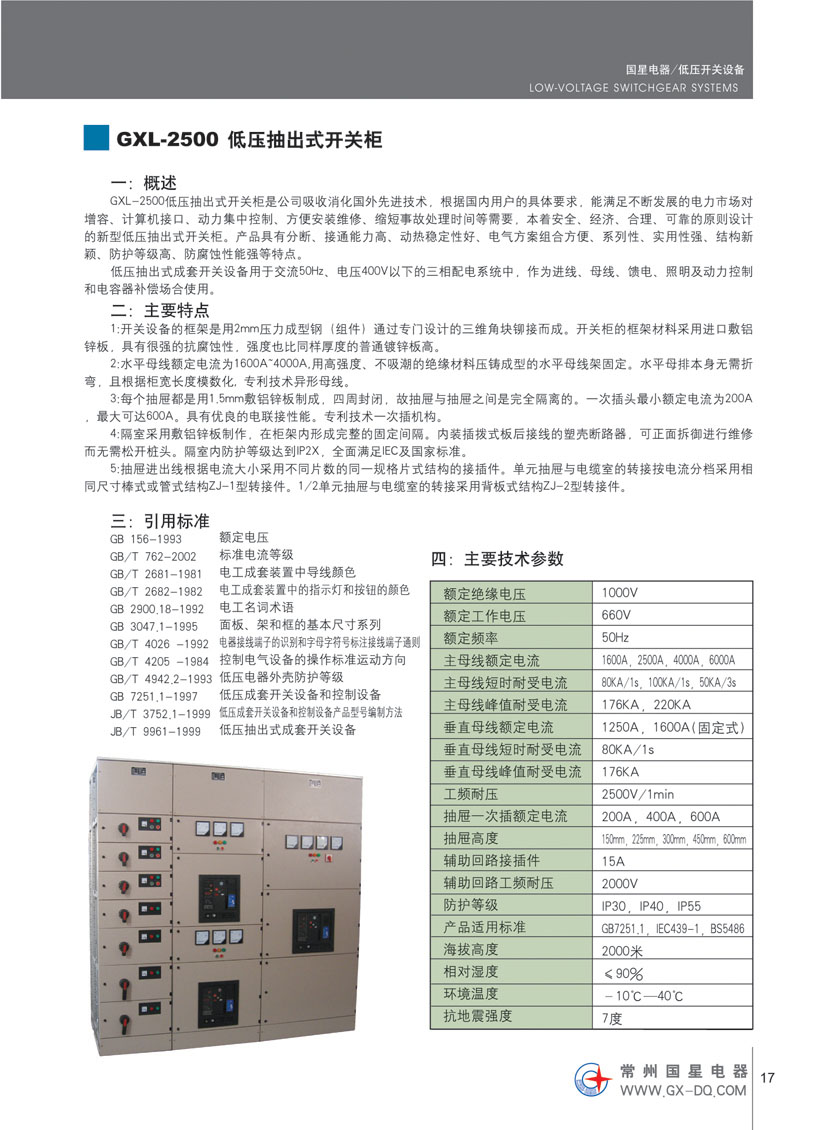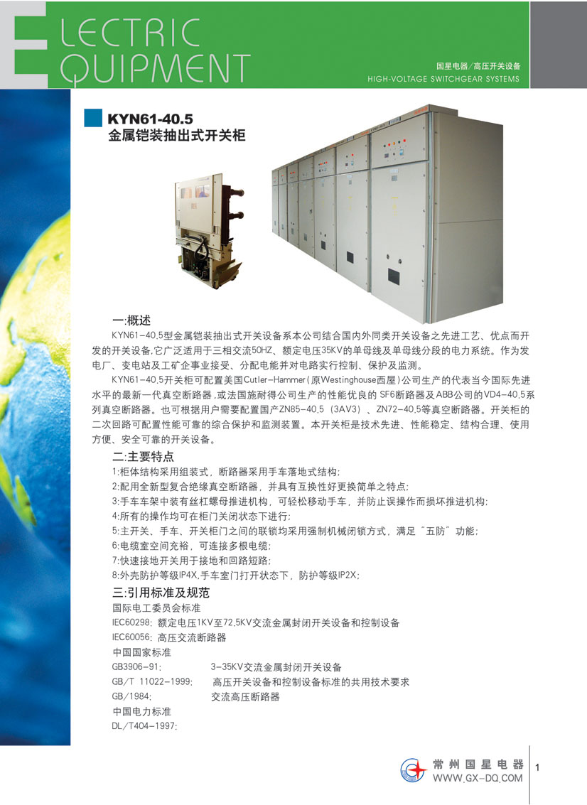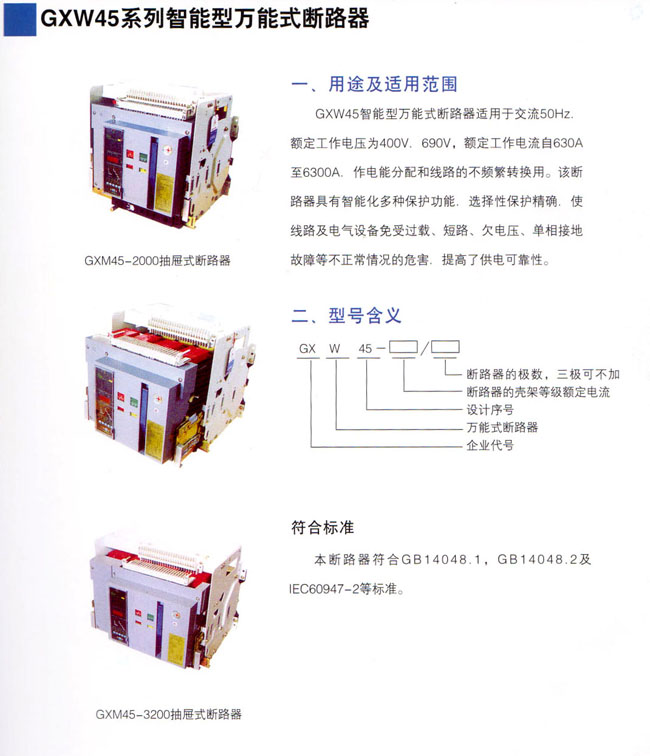 江蘇國(guó)星電器有限公司是國(guó)家定點(diǎn)生產(chǎn)“國(guó)星”牌低壓電器元件的專業(yè)公司,主要生產(chǎn)GXW45(DW45)、GXW50(DW50)、GXW2(DW15HH)系列智能型萬(wàn)能式斷路器;GXDK2智能型低壓真空斷路器;GXW1(DW16)系列萬(wàn)能式斷路器及由其派生的GXW1RD礦用斷路器;GXW1M、GXW2M自動(dòng)滅磁開關(guān)榮獲國(guó)家發(fā)明專利、實(shí)用新型專利;DW15、DW15C及DWX15系列萬(wàn)能式斷路器; GXM1和GXM2系列塑料外殼式斷路器;GXM1L系列帶剩余電流保護(hù)塑料外殼式斷路器;GXM1LC漏電斷路器及漏電智能型斷路器;GXSQ2P雙電源自動(dòng)切換裝置;HD17(X)系列刀形隔離器;HS17(X)系列刀形轉(zhuǎn)換隔離器;Jz20系列接觸式繼電器。