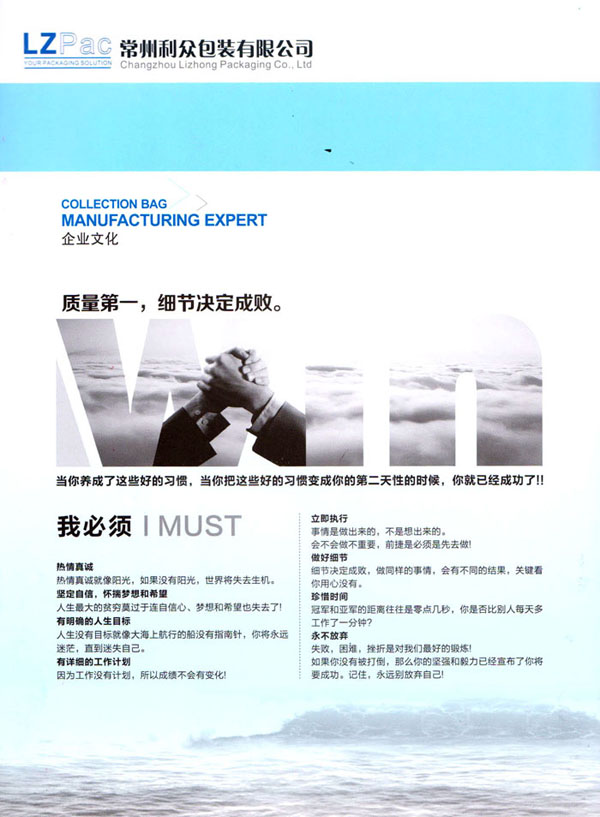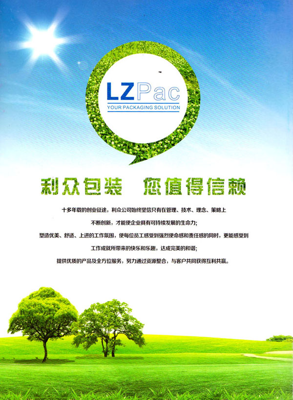 擁有強大的質(zhì)量管理系統(tǒng)。公司成立初期就通過了ISO9001的體系論證。公司奉行“質(zhì)量第一,客戶至上”的經(jīng)營理念,始終堅持以質(zhì)量謀發(fā)展的原則,執(zhí)著追求以新工藝,新設備,高效率不斷優(yōu)化生產(chǎn)流程,降低生產(chǎn)成本以適應市場。常州利眾包裝有限公司地處美麗的江南水鄉(xiāng)——常州。地理位置十分優(yōu)越。