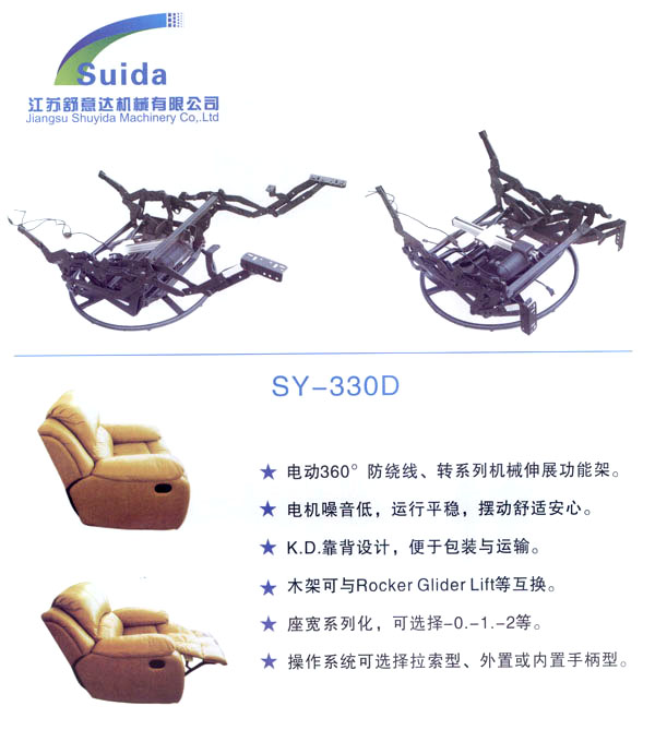 江蘇舒意達機械有限公司是一家集研發(fā)設計,生產(chǎn)制造及銷售的專業(yè)家具五金企業(yè)。公司成立于2006年,座落于風景秀麗的江南常州,交通運輸?shù)锰飒毢,為海?nèi)外客商的來往交流,洽談和供貨提供了諸多便利,公司占地面積28000平方米,生產(chǎn)廠房面積18000平方米,獨立的辦公樓,擁有良好的工作環(huán)境。 我們的經(jīng)營思理念:堅持以人為本,科技為先,用先進的設備,好的工藝流程制造一流的產(chǎn)品。 我們的口號:保證以優(yōu)秀的品質(zhì)服務于客人,我們的目標:研發(fā)更多舒適的產(chǎn)品,帶來生活的享受。 公司誠邀海內(nèi)外客商前來指導洽談,攜手共進,共造雙贏。