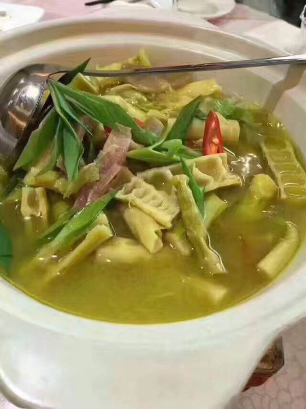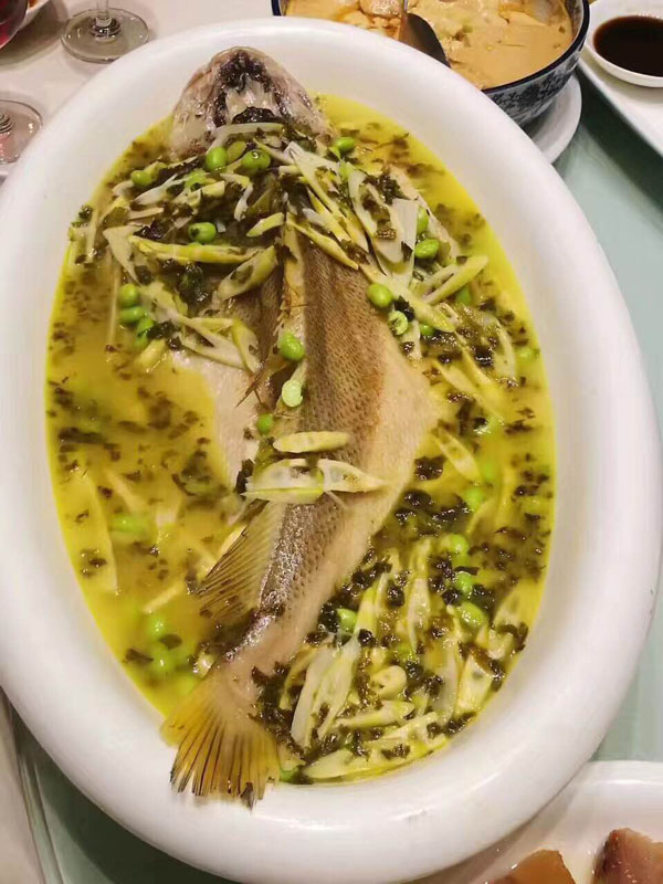橫林有個地兒叫楊歧村,有句老話叫“上不靠橫林,下不靠洛社”,說的就是那里。 楊歧村過去幾十米就是無錫地界,今天小編推薦的土菜館「三妹農(nóng)家小吃」就在那里。 當小編一路七拐八拐,中午11點半到達那里時,門面雖然很簡陋,但店門口已然停了好多輛車。剛進入店門,就發(fā)現(xiàn)這家店人氣好旺,十幾桌基本都坐滿了。(所以說,人不可貌相,餐館也是如此) "三妹,三妹。⒌昀锟腿私袉韭暡唤^于耳,原來老板娘叫楊三妹啊。你們忙,我們先隨便看看。 過大廳到后堂就是冷菜間,里面有白切草雞、鹵豬干、拌馬蘭等十幾種土菜,尤其那草雞濃郁的香味,讓小編肚子叫得咕咕響。 往前是活貨區(qū),各種鮮魚活蝦一格一格區(qū)分養(yǎng)著,再里面是開放式廚房,每個客人都可以看到,選用的放心食材和調(diào)料。  吃貨老板娘,楊三妹,三妹,從小到大一直有個嗜好,就是愛美味,不光喜歡吃,還喜歡鉆研做。2010年,「三妹小吃」開張,因為獨具特色,在楊歧這個小村一炮而紅。要說楊三妹最拿手的菜是什么,當然是酒糟扣肉。 糟本來就是一種做米酒留下來后,用來吊燒酒的。但是我們常州人很聰明,把糟和肉放在一起,做成一道美味菜,叫酒糟扣肉。 楊三妹的酒糟扣肉之所以有名,得益于母親的悉心傳授。記憶里小辰光,她母親做的扣肉總比別人家的香!冈恪梗勍昃坪罅粝碌脑,會與炒熟的新糯米,拌和在一起,陳一年!溉狻,選擇本地養(yǎng)殖的良種豬,沒有臊味。 長大后,她把記憶里的美味延續(xù)了下來。精益求精的她,對扣肉的制作過程要求很嚴格。別人家制作都是把肉直接切大塊,排碗,熬槽,蒸爛。三妹說,這樣烹制,肉汁的鮮美會流失很多,口感減分不少。她的做法是精選新鮮豬五花,整大塊清蒸,保留肉汁的鮮美,之后再切塊紅燒,排碗,熬糟,澆蓋,再蒸。 三妹酒糟扣肉,出鍋后,色澤紅潤,味道鮮美。既有酒的香味,又有肉的鮮美,而且經(jīng)過蒸煮后,油脂都出來了,爽口不油膩。