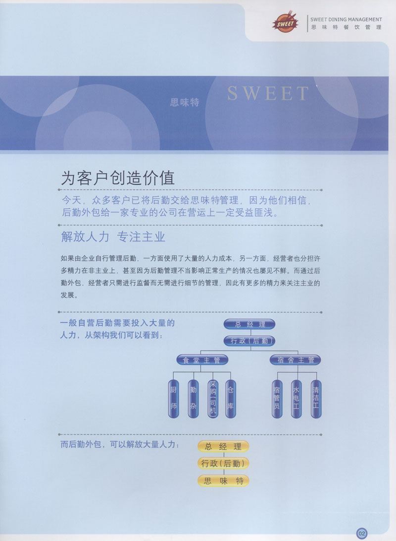 和美客愿為更多的國內(nèi)外企事業(yè)單位及機(jī)關(guān)團(tuán)體分憂解難,從廚房設(shè)計、菜品配送、團(tuán)膳承包、到生活區(qū)管理等提供全方位的服務(wù)。