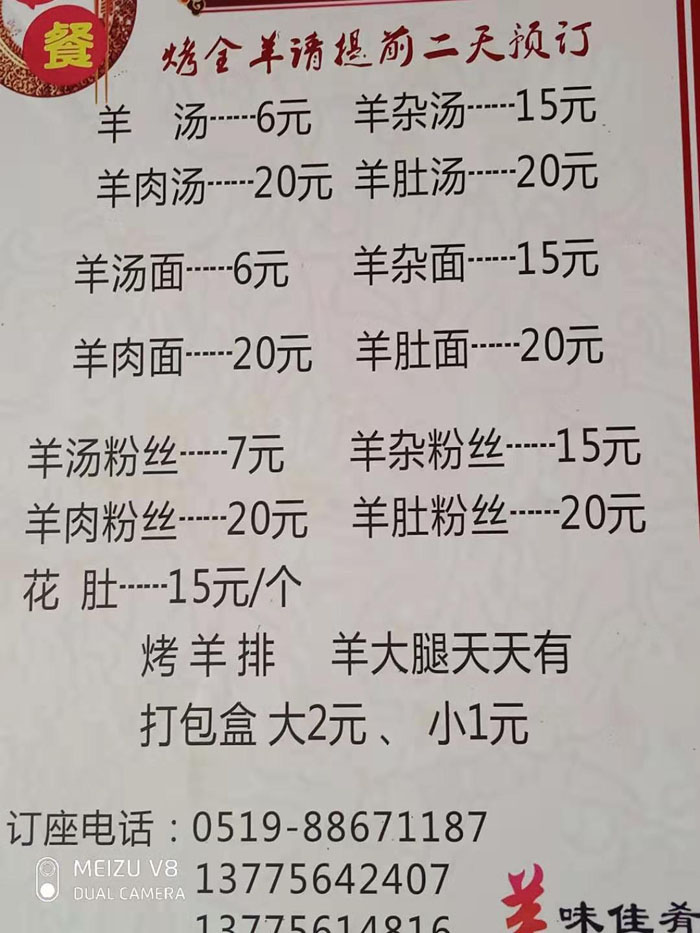 武進區(qū)鄭陸寧河全羊館從事羊肉經(jīng)營四十年,羊館經(jīng)營面積300平方米,從羊頭到羊蹄都能做菜:羊頭、羊排、羊拐、羊蹄、羊耳,其他還有羊羔,烤羊,羊湯面,清水羊肉,全羊宴。羊肉湯只是白煮,湯白而濃稠,肉爛味鮮,還不腥不油不膩。你若細看菜單就能發(fā)現(xiàn),全羊席幾乎都是拿燉湯帶出來的,這更加顯示出羊肉湯的魅力。 我們結合現(xiàn)代人飲食文化的特點,以考究的投料,精細的制作工藝,調(diào)出的全羊湯,湯汁乳白、鮮而不膳、香醇不膩、味道鮮美,具有補虛壯陽、溫中暖下之功效。