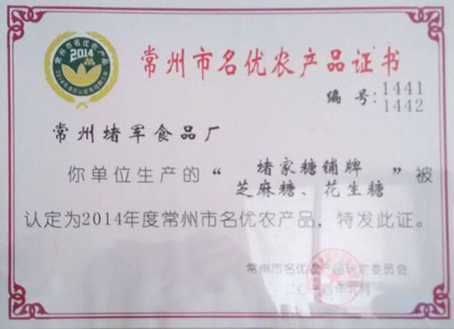 “堵家糖鋪”牌芝麻糖。2013年度生產(chǎn)量已達(dá)100噸左右實(shí)現(xiàn)銷(xiāo)量額為250萬(wàn)元,同時(shí)本廠的產(chǎn)品已進(jìn)入“瑞和泰"“好比家”“名仁”常州機(jī)場(chǎng)等高端銷(xiāo)售區(qū)域,并與“瑞和泰”形成戰(zhàn)略合作伙伴關(guān)系:為瑞和泰貼牌加工生產(chǎn)。 常州堵軍食品廠生產(chǎn)的芝麻糖是以:大米和麥芽用相傳百年歷史的循環(huán)水濾蒸煮法提煉出其中的麥芽糖漿,再用芝麻,花生,桂花,橘皮,面粉為輔料,歷23道工序手工制作而成。它是一種具有營(yíng)養(yǎng)豐富性和抗衰老性食品。富含蛋白質(zhì),脂肪,維生素A,維生素B,鈣鐵鎂,卵磷脂,硫胺素等營(yíng)養(yǎng)元素。 全麥芽芝麻糖是一種獨(dú)具地方特色的大眾性休閑食品。有其獨(dú)特的地方性和文化性。無(wú)論是逢年過(guò)節(jié)還是日常生活都是饋贈(zèng)親友,款待賓客的首選佳品之一。