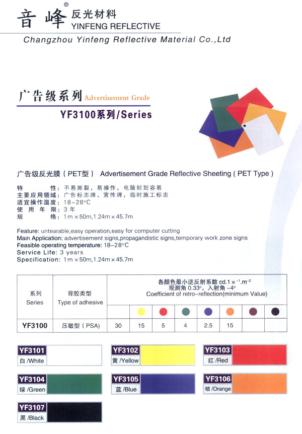 音峰集團是一個多種經(jīng)營的綜合性高科技股份公司,從事反光材料、交通安全設(shè)施、絲網(wǎng)印刷、揚聲器、紡織等產(chǎn)品的研制開發(fā)、生產(chǎn)銷售。公司自創(chuàng)立以來,堅持走科技發(fā)展的道路,以滿足客戶需求為公司宗旨,取得了令人矚目的經(jīng)濟效益和社會效益,使公司規(guī)模不斷擴大。 音峰反光材料有限公司是音峰集團下的一個新銳的子公司,主要從事系列反光材料及發(fā)光膜的研制和開發(fā)。公司擁有國內(nèi)最先進的生活殘設(shè)備,最專業(yè)的研制、開發(fā)人員,公司還投入了大量的資金,年產(chǎn)值達1.5億。 公司主生產(chǎn):廣告級反光膜、工程級反光膜、車牌級反光膜、高強級反光膜、廣告級反光雙色條、發(fā)光膜、噴繪反光膜、晶彩格、電信電力反光膜,鍍鋁膜等等..........根據(jù)國家指令法規(guī):反光材料的領(lǐng)域,如公路標(biāo)志、標(biāo)牌、標(biāo)線、礦山、鐵路等......... 反光膜廣泛應(yīng)用于各種廣告標(biāo)志牌,公路鐵路的導(dǎo)向牌、指示牌、地名牌、車牌,道路交通標(biāo)志,物業(yè)小區(qū)標(biāo)志,臨時施工標(biāo)志,廣告宣傳、安全防護、高等級公路的各種警示標(biāo)語,標(biāo)識牌等。 公司堅持以生產(chǎn)力標(biāo)準(zhǔn)衡量企業(yè)效益和員工業(yè)績,堅持“以人為本,提倡知人、容人、用人、培養(yǎng)人,使企業(yè)具有極強的凝聚力,在激勵的市場競爭中保持旺盛的生命力!笨萍急WC品質(zhì),服務(wù)完善產(chǎn)品“是我們永遠不變的信念。 隨著世界的發(fā)展,企業(yè)經(jīng)營進入了全球化時代,本著這一共識,企業(yè)憑借自身的技術(shù)優(yōu)勢,積極參加國際間合作與競爭,努力拓展國內(nèi)與國際市場,公司愿與國內(nèi)外各界朋友在更廣泛的領(lǐng)域攜手合作,共同發(fā)展,共創(chuàng)繁榮。