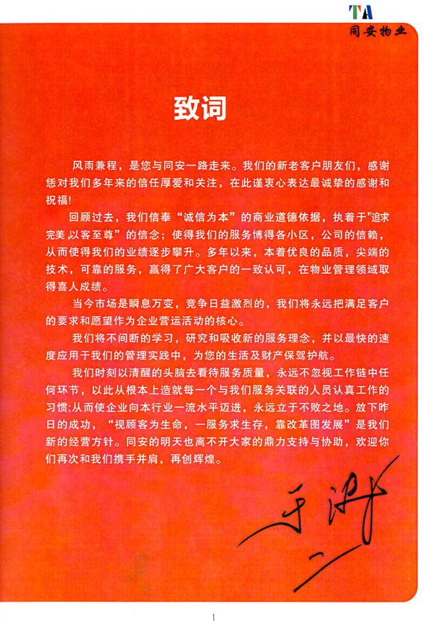 常州市同安物業(yè)管理有限公司注冊1999年,發(fā)展至今已有多年歷史,本公司坐落于美麗的龍城常州,秉承“融聚無限未來”的核心理念,融專業(yè)認才,匯優(yōu)質(zhì)資源以”專心,細心,耐心”的服務(wù)態(tài)度,為客戶打造“安心,順心,稱心”的服務(wù)感受。