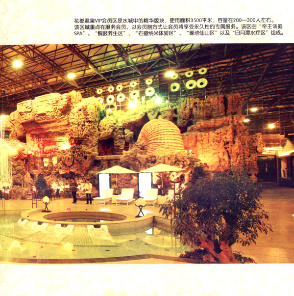 花都溫泉水城包括洗浴區(qū)、戲水世界、露天溫泉、自助餐廳、生態(tài)房、別墅區(qū)、紅文化房、VIP區(qū)等多種功能區(qū)域,是集溫泉養(yǎng)生、休閑住宿、演藝會(huì)務(wù)為—體的休閑度假勝地,給賓客帶來江南小鎮(zhèn)的浪漫水城之旅。