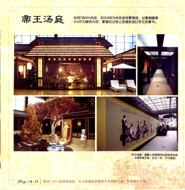 花都溫泉水城包括洗浴區(qū)、戲水世界、露天溫泉、自助餐廳、生態(tài)房、別墅區(qū)、紅文化房、VIP區(qū)等多種功能區(qū)域,是集溫泉養(yǎng)生、休閑住宿、演藝會(huì)務(wù)為—體的休閑度假勝地,給賓客帶來江南小鎮(zhèn)的浪漫水城之旅。