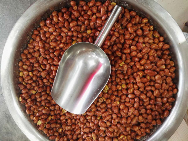 湖塘花東街上的“石頭炒貨店”是20多年的老字號了。上個世紀(jì)90年代,二十郎當(dāng)歲的“石頭”一一石愛軍從徐州來到武進(jìn),就在這條街上擺了個炒貨攤!皫灼椒矫椎男〉財,邊上架個大鐵鍋,炒出的瓜子、花生、蠶豆,鋪在竹篾上篩過、冷卻后就可以賣了!笔瘣圮娀貞,街坊鄰里冒著冬日的嚴(yán)寒,擠在地攤前嘗著剛出鍋的瓜子的場景,還歷歷在目。20多年過去了,鄰居們都成了最熟悉的親人,從年輕姑娘到抱著孫子的老人,大家還是最愛吃石頭炒的瓜子。而炒貨店的店面也擴(kuò)大了,并且在湖塘另開了多家分店。 生意最好的還是花東街上的老店。不大的店面,被一袋袋瓜子、花生、蠶豆、核桃堆得滿滿的,空氣里也滿滿都是堅果的香氣。超大瓜子唇齒留香,去皮瓜子鮮香入昧,南瓜子皮薄肉厚,還有開心果、手剝松子、小油果、核桃、碧根果、小黃豆,以及炒米糕、蛋卷、麻松條、紫薯干、地瓜干、山芋片、鍋巴、芝麻糖、山楂、麻花、葡萄干….這么多美昧都是老板親手制作。愛吃點什么,就用一 長柄勺鏟點兒什么,最質(zhì)樸簡單的包裝袋里,裝著的是屬于這條老街居民記憶里的味道,穿過幾十年的時光,仍然鮮活生動地銘刻在每一個人的里。 “少東家”石榮沖就是在這個老店、這條老街長大的。他說目前自己炒瓜子的技藝還沒到火候,還在跟著父親學(xué)習(xí)的階段!碧暨x原料、炒制工序,每一步都有學(xué)問在里頭。”拿店內(nèi)的銷售冠軍“內(nèi)蒙大瓜子”來說,這種來自內(nèi)蒙、經(jīng)過充足日照的葵花子每顆長度近2厘米,個頭特別大,也十分飽滿。拈一顆大瓜子,就連嗑起來的聲音也分外清脆。外皮很容易與內(nèi)仁剝離,碩大的瓜子仁口感十分香脆,與別家作料用得很足、吃起來特別鮮咸的瓜子不同,這種大瓜子更注重烘托原昧,淡淡的咸昧在舌尖掠過,剩余的都是屬于瓜子的天然香甜。