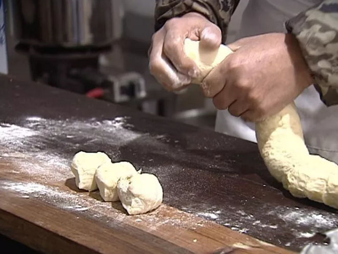 下粉、摻水、攪拌、揉搓……棉絮狀的面粉像被施了魔法,不一會兒就變成了一個白凈光滑的面團。