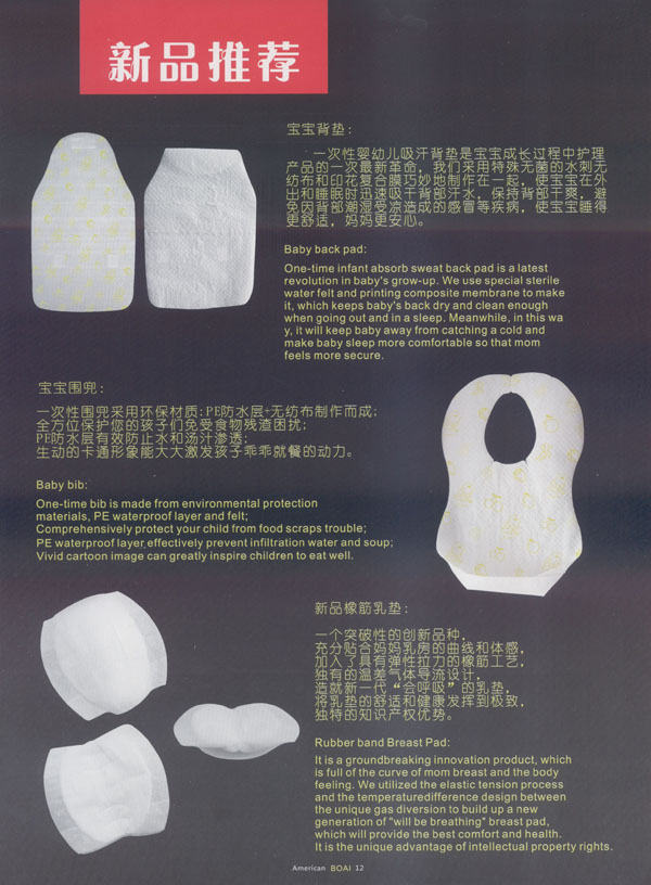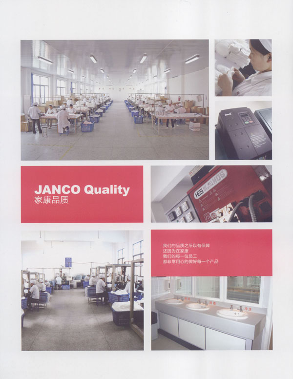 中國(JANCO)家康衛(wèi)生用品公司成立于2004年,我們專注于研發(fā)、設(shè)計(jì)、及制造健康的衛(wèi)生用品。我們的產(chǎn)品包括防溢乳墊、汗墊、寶寶背墊、圍兜、護(hù)理墊等。我們的生產(chǎn)廠房建設(shè)在中國江蘇省常州市,這是一個(gè)非常美麗的城市,并且我們的廠區(qū)鄰近沿江高速,交通非常便利。 我們擁有國際一流的生產(chǎn)設(shè)備、先進(jìn)的檢測儀器、無菌的生產(chǎn)車間。我們每一個(gè)產(chǎn)品都經(jīng)過家康人專心、專業(yè)的制造,我們注重每一個(gè)細(xì)節(jié),不斷的研發(fā)更舒適、更健康、更人性化的產(chǎn)品,旨在為您提供更滿意的服務(wù)。我們也可以根據(jù)您的需求研發(fā)、設(shè)計(jì)、生產(chǎn)不同的產(chǎn)品。我們的產(chǎn)品已遠(yuǎn)銷海外,并且得到非常好的評(píng)價(jià)。出口的國家有美國、加拿大、英國、意大利、俄羅斯、南非、泰國等。人性化的設(shè)計(jì)、優(yōu)秀的品質(zhì)、完善的售前、售后服務(wù)及合理的價(jià)格使我們的客戶與我們的合作感到非常的愉快。 我們已經(jīng)通過了ISO9000和FDA認(rèn)證,我們將感到非常榮幸能夠與您合作。 我們非常樂意與中國的經(jīng)銷商共同分享我們的產(chǎn)品,我們將非常期待您的信任和加盟。 我們將一如既往的為您提供:更舒適的、更健康的產(chǎn)品。