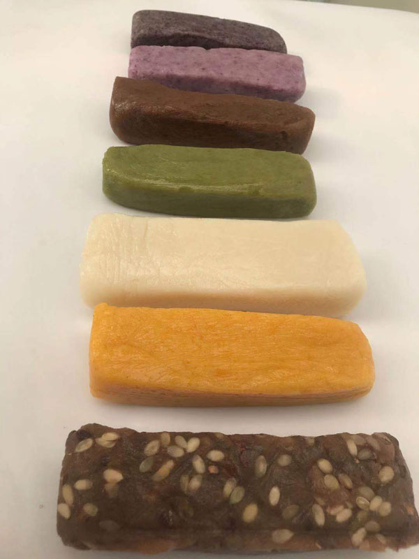 腳踏糕本名“年糕”,按常州周邊地區(qū)的風(fēng)俗習(xí)慣,在春季前夕,各家各戶都要蒸年糕,吃年糕!案狻敝C音“高”,過(guò)年吃年糕被賜予“年年高”,一年高一年,鋒吉祥之意,表達(dá)這人們對(duì)未來(lái)美好生活的憧憬和良好的祝愿。今天小編要帶大家的就是一家至今保持著傳統(tǒng)手工制作的鈺鋒糕點(diǎn)坊。 鈺鋒糕點(diǎn)坊位于常州鄭陸鎮(zhèn)三皇廟范家莊,一個(gè)比較偏僻的村莊,雖然這家作坊不大,但香糯絲滑,軟糯適中,韌勁十足的腳踏糕吸引了無(wú)數(shù)的食客。制作一條腳踏糕要從淘米,浸泡,碾粉,鋪粉,一層一層的鋪下去,需要無(wú)數(shù)道制作工序,這些都是店主孫煥公公老周,憑著幾十年的經(jīng)驗(yàn),加上店主孫煥從不馬虎的決心! 這“腳踏”也并非赤腳上陣,而是把蒸好的糕倒入早以準(zhǔn)備好的框子里,用布包裹好,上面再用薄膜包好,再蓋上布,再換上專門腳踏的布鞋,踩的時(shí)候要?jiǎng)蚍Q,左右腳要配合好,不然糕會(huì)高高低低,不平整,最后再拿蠟燭線拆成一條小長(zhǎng)條,再拿帶包裝好,如此又香又糯的腳踏糕就大功告成了。 店主孫煥為了讓更多的人認(rèn)識(shí)和了解常州腳踏糕的傳統(tǒng)文化和美食,她在傳統(tǒng)工藝中增加了適合現(xiàn)代文化的多種口味,她在糕里加入南瓜,紫薯,老紅糖,大麥汁,血糯米,核桃,葡萄干,紅棗等食材,做出五顏六色,純天然的口味,深受食客們的喜愛,不管是送人還是自己吃都非常新穎。 (重陽(yáng)糕)重陽(yáng)糕的由來(lái),九九重陽(yáng),九是陽(yáng)數(shù),也是陽(yáng)數(shù)中最大的數(shù),九月初九,兩九相重,為之重陽(yáng),古人有重陽(yáng)登高的習(xí)俗。高于糕同意,寓意人活九十九,生活步步高,秋景勝春光,夕陽(yáng)無(wú)限好。夕陽(yáng)紅成了老人對(duì)自己美好的祝愿和希望,所以從某種意義上來(lái)講它“祝壽糕”“長(zhǎng)壽糕”重陽(yáng)糕在常州地區(qū)是家喻戶曉的,下面小編帶你去一家至今保持傳統(tǒng)手工制作的鈺鋒糕點(diǎn)坊看一下吧。鈺鋒糕點(diǎn)坊位于常州市天寧區(qū)鄭陸鎮(zhèn)三皇廟范家莊,偏僻的小村莊,雖然有點(diǎn)偏僻,但是每到重陽(yáng)節(jié)到來(lái),每天還是有很多食客來(lái)訂購(gòu)和購(gòu)買店主孫煥做的多種口味的重陽(yáng)糕。要想做出松軟香糯的重陽(yáng)糕,原材料和糯米和梗米的配比也很重要,調(diào)整好比例開始淘米,浸泡,釓粉,放入糖攪拌,篩粉,糕底部放上荷葉,中間的餡心都是孫煥自己熬制,口感,香糯松軟,店主孫煥為了吸引更多現(xiàn)代年輕人,她在粉里加入南瓜,紫薯,紅糖,血糯等,色彩搭配很出跳,吸引來(lái)了很多食客,孫煥2019年開始自愿捐贈(zèng)重陽(yáng)糕給敬老院,她說(shuō)這樣的公益活動(dòng)自己很喜歡,雖然金額不大,缺表達(dá)了她的一份心意,并稱這樣的公益活動(dòng)她每年都會(huì)做。
