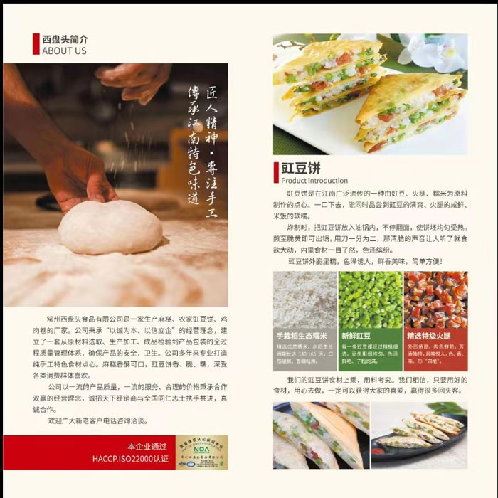 常州西盤頭食品有限公司是一家專業(yè)生產(chǎn)農(nóng)家豇豆餅的廠家。公司秉承“以誠為本、以信立企”的經(jīng)營 理念,建立了一套從原材料選取、生產(chǎn)加工、成品檢驗(yàn)到產(chǎn)品包裝的全過程質(zhì)量管理體系,確保產(chǎn)品的安全 ,衛(wèi)生。公司多年來專業(yè)打造純手工特色食材點(diǎn)心。豇豆餅香,脆、糯的口感深受各類群體喜歡。