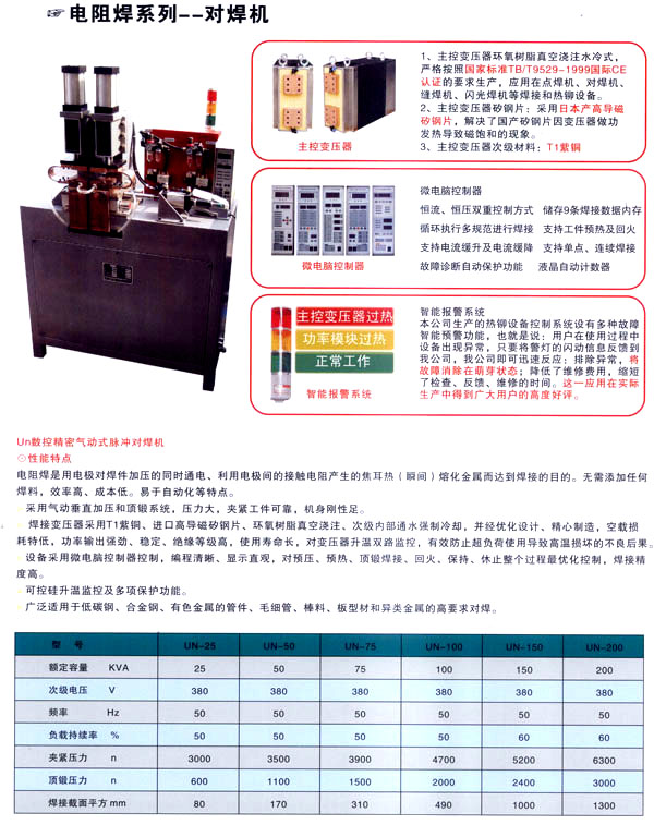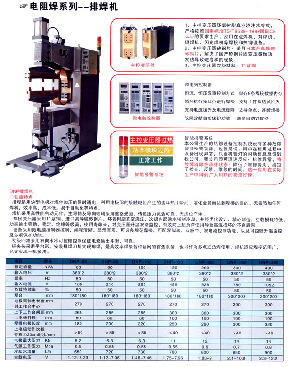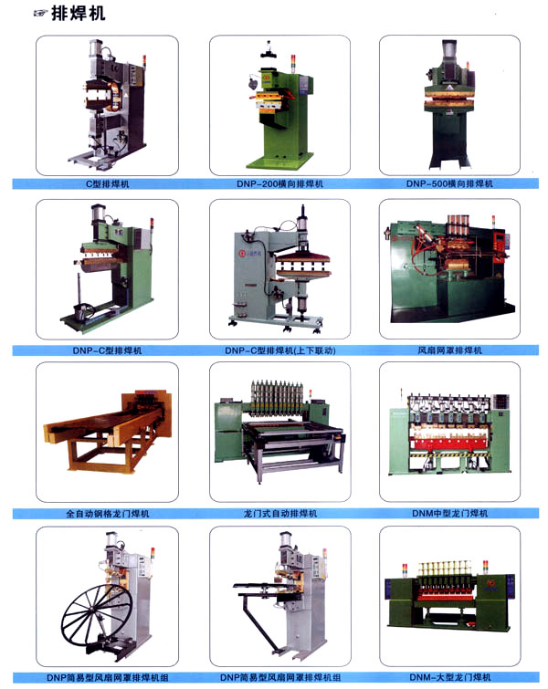 焊割主要產(chǎn)品有:點(diǎn)焊機(jī)系列、縫焊機(jī)系列、環(huán)縫焊接機(jī)床、凸焊機(jī)、排焊機(jī)、儲(chǔ)能焊機(jī)、對(duì)焊機(jī)、龍門焊機(jī)、太陽能焊接設(shè)備和機(jī)器人焊接系統(tǒng)及外圍設(shè)備等;并為用戶設(shè)計(jì)制造專用焊接設(shè)備。