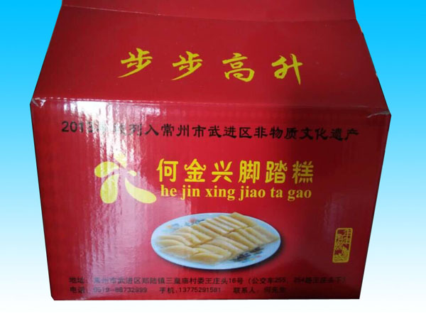 常州鄭陸何金興腳踏糕制作坊從事腳踏糕制作工藝200多年,五代傳承,制作面積300平方米左右,腳踏糕是用黏性大的米或米粉蒸成的糕,是中國農(nóng)歷年的應(yīng)時食品。春節(jié),我國很多地區(qū)都有講究吃年糕。年糕有紅、黃、白三色,象征金銀,年糕又稱“年年糕”,與“年年高”諧音,寓意著人們的工作和生活一年比一年提高。所以前人有詩稱年糕:“年糕寓意稍云深,白色如銀黃色如金。年歲盼高時時利,虔誠默祝望財臨!绷碛姓憬幉ㄊ薪眳^(qū)慈城鎮(zhèn)的水磨年糕也是特別有名。