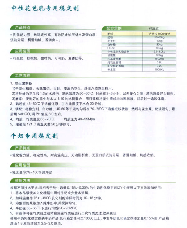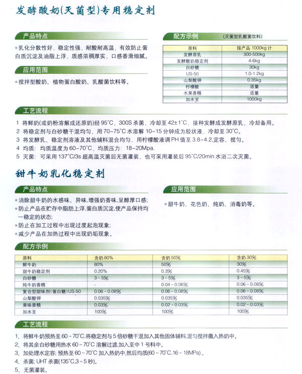常州市中友食品有限公司;匚挥诔V菔袞|郊開(kāi)發(fā)區(qū),廠房占地面積6000平方米,擁有全新的生產(chǎn)線,先進(jìn)的生產(chǎn)流程和嚴(yán)格的質(zhì)量管理體系(工廠已通過(guò)IS09001:2000質(zhì)量管理體系的認(rèn)證)。并有專(zhuān)業(yè)的技術(shù)開(kāi)發(fā)和理化檢驗(yàn)的設(shè)施、經(jīng)驗(yàn)豐富的技術(shù)人員。公司以科技為依托,常年與高等院校合作,不斷地開(kāi)發(fā)和研制適合市場(chǎng)需求的食品添加劑系列產(chǎn)品。公司每年面向全國(guó)招收優(yōu)秀的博士、碩士及優(yōu)秀的大學(xué)生。公司現(xiàn)有員工1 00多人,管理人員2 0名、高工5名、產(chǎn)品專(zhuān)業(yè)技術(shù)開(kāi)發(fā)人員12名,還有選擇地引進(jìn)和代理國(guó)內(nèi)外各種適用的食品添加劑。 依靠本公司雄厚的科技力量和先進(jìn)的科技設(shè)備,生產(chǎn)基地已經(jīng)具備了與客戶共同開(kāi)發(fā)國(guó)內(nèi)外先進(jìn)食品添加劑的應(yīng)用技術(shù)。博適中友公司多年來(lái)致力于食品添加劑的研究和開(kāi)發(fā),突破常規(guī)理念,以市場(chǎng)、用戶為中心,研究開(kāi)發(fā)各個(gè)品種、各個(gè)檔次的食品添加劑,品種齊全又多樣,既有出口型又有內(nèi)銷(xiāo)型。公司主要穩(wěn)定劑產(chǎn)品有:乳飲料乳化穩(wěn)定劑、乳酸飲料乳化穩(wěn)定劑、冰淇淋(雪糕)復(fù)合乳化穩(wěn)定劑、果汁飲料乳化穩(wěn)定劑等,產(chǎn)品暢銷(xiāo)國(guó)內(nèi)外,覆蓋了全國(guó)二十多個(gè)省市,并建立了穩(wěn)定的銷(xiāo)售網(wǎng)絡(luò)。 本公司對(duì)產(chǎn)品指定了嚴(yán)格的質(zhì)量標(biāo)準(zhǔn),并報(bào)請(qǐng)常州市技術(shù)檢驗(yàn)監(jiān)督局審核批準(zhǔn),其技術(shù)要求完全符合GB一2760(食品添加劑使用衛(wèi)生標(biāo)準(zhǔn))和符合聯(lián)合國(guó)直接衛(wèi)生組織(WHO)、聯(lián)合國(guó)食品與農(nóng)業(yè)組織(FAO)以及美國(guó)食品和藥物管理局的有關(guān)規(guī)定。 長(zhǎng)期以來(lái),博適中友公司以市場(chǎng)定位為基本依據(jù),堅(jiān)持發(fā)展并開(kāi)辟多元化的國(guó)內(nèi)外市場(chǎng):以專(zhuān)業(yè)化、長(zhǎng)遠(yuǎn)化、規(guī)模化為經(jīng)營(yíng)思路:以開(kāi)拓創(chuàng)新,務(wù)實(shí)誠(chéng)信為經(jīng)營(yíng)理念,不斷促進(jìn)企業(yè)發(fā)展壯大。 公司自創(chuàng)建以來(lái),始終不渝地堅(jiān)持質(zhì)量第一、信譽(yù)至上,以精湛的工藝加工產(chǎn)品,不管是標(biāo)準(zhǔn)的或特制的都可享有本公司優(yōu)良的技術(shù)服務(wù)。無(wú)論您需要何種功能性添加劑,博適中友食品添加劑公司均能滿足您的要求。博適中友公司以價(jià)格合理、服務(wù)周到為經(jīng)營(yíng)宗旨,努力引導(dǎo)食品添加劑應(yīng)用發(fā)展的新潮流、新方向。在才能卓越的領(lǐng)導(dǎo)者的帶領(lǐng)下,全體員工以開(kāi)拓、創(chuàng)新、求實(shí)、守信為企業(yè)精神,不斷地提高自身的素質(zhì)。 公司的宗旨是“開(kāi)拓創(chuàng)新發(fā)展、精誠(chéng)服務(wù)和諧”為目標(biāo),熱忱與各界有識(shí)之士攜手共進(jìn),共創(chuàng)輝煌!如今公司業(yè)務(wù)蒸蒸日上,專(zhuān)業(yè)技術(shù)研究越走越精,這都與廣大客戶大力支持分不開(kāi)。在新世紀(jì)來(lái)臨之際,上海博適中友公司愿與您真誠(chéng)合作,攜手并進(jìn),共鑄新的輝煌!