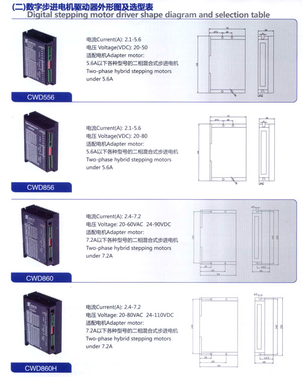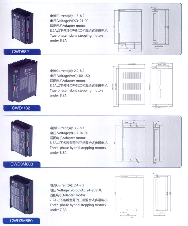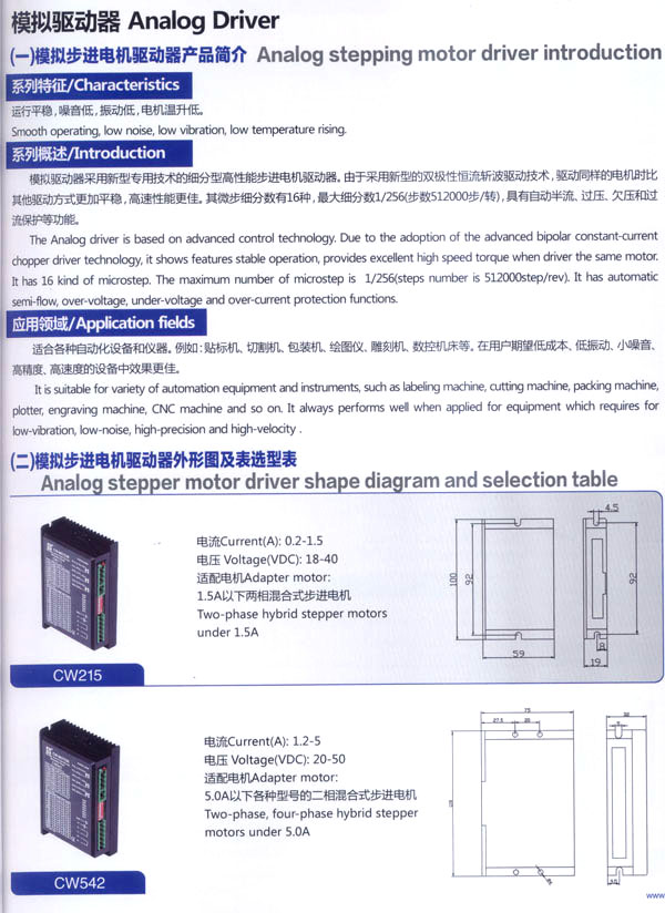 常州創(chuàng)偉電機電器有限公司成立于1995年,是一家專業(yè)從事步進電機及驅動控制生產、研發(fā)的企業(yè),F(xiàn)已擁有一批富有經驗的生產和開發(fā)隊伍。企業(yè)在多年的發(fā)展過程中,為全國各地各行業(yè)提供了大量質優(yōu)價廉的步進電機及控制產品。應用領域涉及機器人、音樂噴泉、數(shù)控機床設備、工業(yè)電子自動化設備、醫(yī)療器械、廣告器材、舞臺燈光設備、印刷設備、紡織機械、計算機外部應用設備等等。 公司產品先后通過ISO9001質量管理體系認證,RoHS認證,CE認證。公司現(xiàn)擁有全自動繞線機、調壓式充磁機、萬能外圓磨床、數(shù)控機床等設備50余臺,固定資產3000萬元,員工總數(shù)200余人,其中技術人員25人。年生產各類電機100萬臺。依靠齊全的檢測設備、完善的檢測手段、嚴格的質量標準,我們一直致力于提高產品的質量和性能。對于每一個客戶我們都提供自始自終的技術服務和產品售后服務。 我公司的主要產品有20BH系列、28BH系列、35BH系列、39BH系列、42BH系列、42BHH系列、57BH圓形系列、57BHH方形系列、60BHH方形系列、86BH圓形系列、86BHH方形系列,以及110BHH系列的四相(二相)混合式步進電。CW60BL、CW63BL、CW70BL、CW92BL系列無刷電機也相繼上市。另外步進電機驅動器CW215、CW230、CW5045、CW8060、CW6060AC、CW1108以及全新數(shù)字式驅動器CWD230、CWD556、CWD860H、CW2M2208、CW3M2208和閉環(huán)電機驅動器CWDS556,CWDS660,CWDS860H,CWDS880L,CWDS1108,CWDS2206等系列也暢銷全球。另外本公司也可對外承接各種步進電機及相關工控系統(tǒng)的應用系統(tǒng)工程。 熱忱歡迎國內外客商前來洽談及合作。