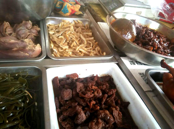 武進(jìn)區(qū)嘉澤老街十字路口,有一家不起眼的鹵菜專賣店,店面雖然不大,但一年365天每天來購買鹵菜的消費(fèi)者卻絡(luò)繹不絕。 這家鹵菜店名叫鎖林鹵菜店,店主名叫萬鎖林。 今年已花甲之年的萬鎖林,出生在武進(jìn)區(qū)的一個(gè)鹵菜世家。解放前,正逢亂世,1927年其父萬友良17歲隨父從蘇北海安至夏溪鎮(zhèn)落戶,全家以經(jīng)營小吃、鹵菜為生。1956年萬友良經(jīng)營的鹵菜小吃店公私合營,起名為東方飯店(后改名為夏溪飯店),萬友良帶領(lǐng)其七個(gè)兒子全部從事餐飲事業(yè)。1972年,排行第六的萬鎖林初中畢業(yè)被分配到嘉澤飯店工作,直至1982年夫妻倆著手創(chuàng)辦鎖林鹵菜館,專業(yè)從事鹵菜的加工和銷售。 鎖林鹵菜采用祖?zhèn)髋浞,制作工藝?jīng)清洗—汆水—再清洗—油汆—加料—燒制—包裝等多道工序。萬鎖林在祖?zhèn)髅胤降幕A(chǔ)上,不斷探索創(chuàng)新,使鹵菜口味更加香醇可口。他還在菜肴中加入茴香、陳皮、桂皮等20多種中草藥,使產(chǎn)品兼具食用保健作用。 由于鎖林鹵菜色、香、味俱佳,而且價(jià)格合理,遠(yuǎn)近數(shù)十里群眾紛紛前來選購目前,該店已形成鴨頭、雞爪、豬頭肉、五香牛肉等四大系列,產(chǎn)品遠(yuǎn)銷北京、上海、浙江、海南及蘇、錫、常各地,深受各地消費(fèi)者青睞。 購買地址: 一、嘉澤鎮(zhèn)菜市場(chǎng)內(nèi) 二、嘉澤鎮(zhèn)老街十字路口 電話:0519-83802086 訂購熱線:18915002160