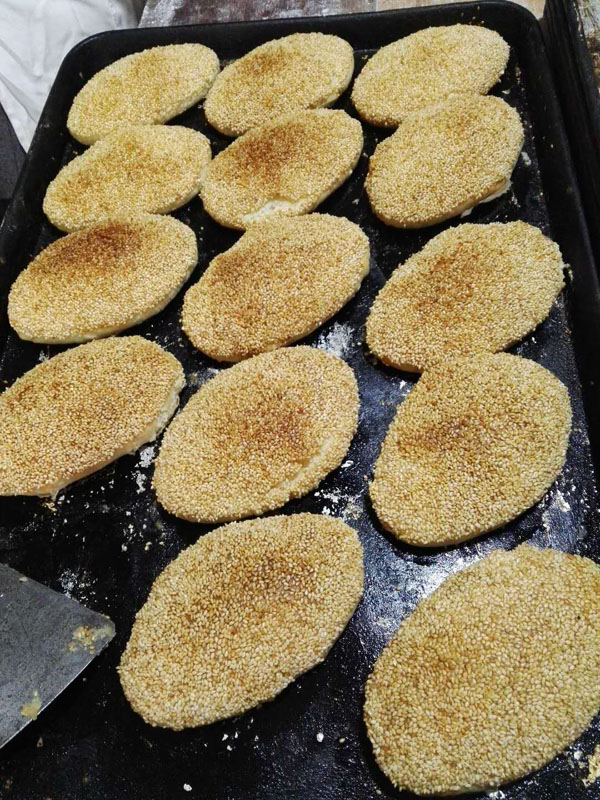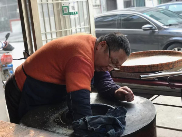 常州大麻糕已經(jīng)有150多年的歷史,常武各地的麻糕師傅、麻糕店數(shù)不勝數(shù),但今天小編要帶大家去的是一家隱藏在背街小巷里,至今仍保持著傳統(tǒng)手工制法的麻糕店。 沈正昌麻糕店位于遙觀鎮(zhèn)東街、國寧寺旁,雖然店門口連個(gè)招牌都沒有,卻不妨礙四面八方的食客慕名而來,大伙看中的正是這些純手工制作,原汁原味的大麻糕。如今的店主沈國平已經(jīng)是沈家第四代做麻糕的傳人了。 秉承著爺爺那輩傳下來的手藝,他們制作的麻糕塊大實(shí)誠,用料講究,口感酥軟,深受四周鄉(xiāng)鄰的歡迎!拔覀冞是老法,酥是生板油身擦的,餡里也是生板油摻糖,是真的綠色產(chǎn)品,沒有添加劑,沒有防腐劑,也不用甜蜜素,都是真家伙! 每天凌晨一兩點(diǎn)鐘,沈國平就要去采買當(dāng)天最新鮮的豬板油,回來清理干凈,和上面粉攪拌均勻,制成面團(tuán)。麻糕的制作主要由沈國平妻子和兩個(gè)姊妹來完成。揉面、搓胚子、配油酥,按餡心、搟均勻,整個(gè)過程行云流水,連貫無比。 當(dāng)爐火燒得正旺,溫度能高達(dá)近300度,沈國平就上場了,赤手空拳,一撈一貼,一秒鐘的功夫,就把麻糕貼到了桶壁上。不過幾分鐘的功夫,麻糕就出爐了。經(jīng)過炭火爐子烤出來的,比一些電烤爐烤出的更香、更脆。