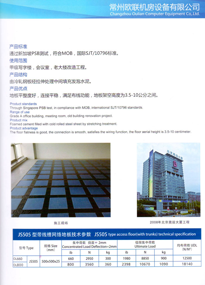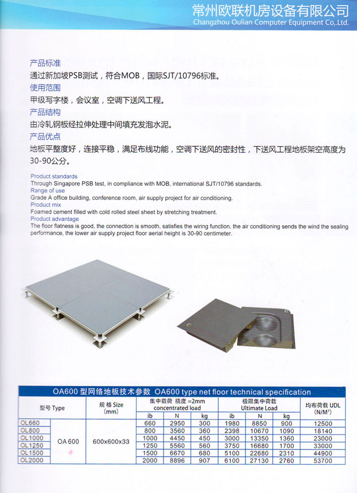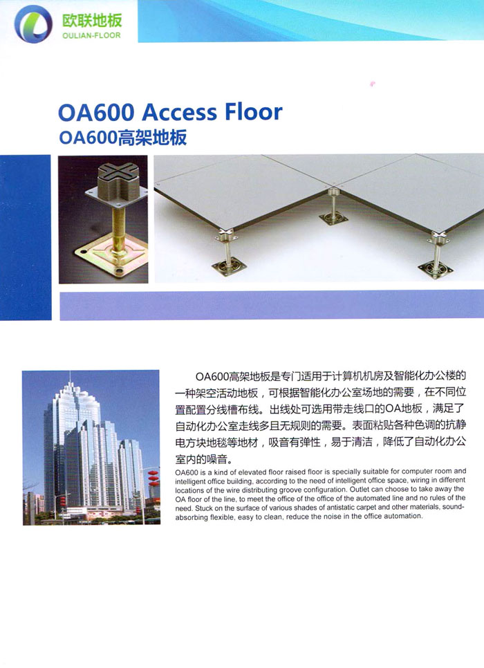 “歐聯(lián)”系列全鋼地板,符合國(guó)家安全要求,種類完備多樣,其中防靜電陶瓷地板、硫酸鈣地板等除具有普通瓷質(zhì)的裝飾和實(shí)用性外,其耐磨、防水、防火功能優(yōu)于其它同類產(chǎn)品,防靜電系列地板,能切合不同客戶的要求,其靈活的配置,深受客戶歡迎,不同材質(zhì)的地板結(jié)構(gòu)使設(shè)計(jì)師的設(shè)計(jì)空間比傳統(tǒng)的更加廣闊自由和善變。