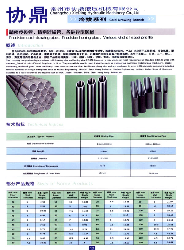 主要生產(chǎn)經(jīng)營(yíng):精密冷拔鋼管,珩磨鋼管,精密活塞桿,液壓油缸、氣缸設(shè)計(jì)制造.高精密液壓冷拔機(jī)、液壓矯直機(jī)、珩磨機(jī)、掏料機(jī)設(shè)計(jì)制造。公司設(shè)有專(zhuān)業(yè)的生產(chǎn)工廠,有多年從事液壓工程研究設(shè)計(jì)的專(zhuān)家及有豐富實(shí)踐經(jīng)驗(yàn)的工程技術(shù)人員,有專(zhuān)用的生產(chǎn)設(shè)備,先進(jìn)的生產(chǎn)工藝,以及完善的質(zhì)量保證體系,以確保產(chǎn)品的質(zhì)量,用最佳的售后服務(wù)為客戶(hù)增值。