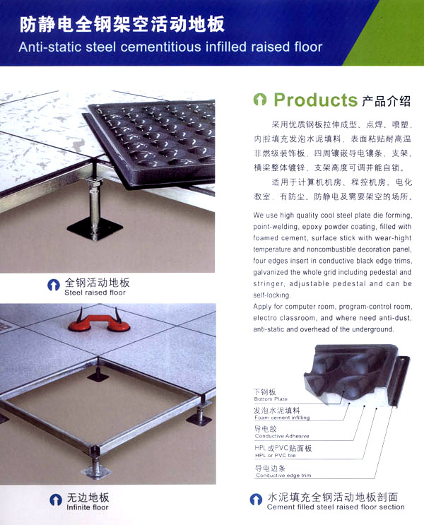 常州天馳活動(dòng)地板有限公司始創(chuàng)于2010年,原身是常州市武進(jìn)區(qū)橫林天馳機(jī)房地板廠,地處橫林工業(yè)園區(qū),交通便捷。 公司主要生產(chǎn)和銷(xiāo)售各種機(jī)房地板,自創(chuàng)立以來(lái),以品質(zhì)第一,信譽(yù)第一,服務(wù)第一的理念堅(jiān)持做全國(guó)最優(yōu)質(zhì)量。 防靜電高架活動(dòng)地板是計(jì)算機(jī)行業(yè)發(fā)展起來(lái)的新型鋪地材料,隔離了潮氣,靜電灰塵。最重要的是解決了綜合布線問(wèn)題,無(wú)需預(yù)埋管線,可隨時(shí)拆卸,搬移,保證了資訊設(shè)備完整的優(yōu)點(diǎn),適應(yīng)了智能化樓宇中信息自動(dòng)化技術(shù)對(duì)所處環(huán)境的特定要求,避免了廣大客戶(hù)的雙重投資,使現(xiàn)代化辦公程度更加高效,辦公場(chǎng)所更加舒適。 公司專(zhuān)業(yè)生產(chǎn)“天馳”系列活動(dòng)地板,符合國(guó)家安全要求,種類(lèi)完備多樣,其中防靜電瓷質(zhì)高架通路地板除具有普通瓷質(zhì)的裝飾和實(shí)用性外,其耐磨,防水,防火功能優(yōu)于其他同類(lèi)產(chǎn)品,深受客戶(hù)歡迎。 公司大力發(fā)展國(guó)內(nèi)外銷(xiāo)售業(yè)務(wù),多次中標(biāo)國(guó)內(nèi)重點(diǎn)裝飾工程,例:湖南電視臺(tái),寧波縣變電站,鞍山市120急救指揮中心等。 公司將一如既往開(kāi)發(fā)和制造一流的產(chǎn)品,愿與廣大有識(shí)之士合作發(fā)展,共創(chuàng)美好未來(lái)!