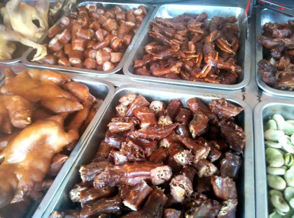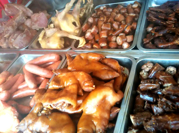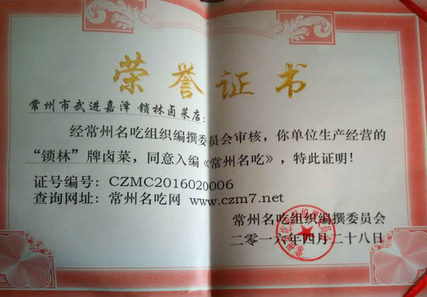 武進區(qū)嘉澤老街十字路口,有一家不起眼的鹵菜專賣店,店面雖然不大,但一年365天每天來購買鹵菜的消費者卻絡繹不絕。 這家鹵菜店名叫鎖林鹵菜店,店主名叫萬鎖林。 今年已花甲之年的萬鎖林,出生在武進區(qū)的一個鹵菜世家。解放前,正逢亂世,1927年其父萬友良17歲隨父從蘇北海安至夏溪鎮(zhèn)落戶,全家以經(jīng)營小吃、鹵菜為生。1956年萬友良經(jīng)營的鹵菜小吃店公私合營,起名為東方飯店(后改名為夏溪飯店),萬友良帶領其七個兒子全部從事餐飲事業(yè)。1972年,排行第六的萬鎖林初中畢業(yè)被分配到嘉澤飯店工作,直至1982年夫妻倆著手創(chuàng)辦鎖林鹵菜館,專業(yè)從事鹵菜的加工和銷售。 鎖林鹵菜采用祖?zhèn)髋浞,制作工藝?jīng)清洗—汆水—再清洗—油汆—加料—燒制—包裝等多道工序。萬鎖林在祖?zhèn)髅胤降幕A上,不斷探索創(chuàng)新,使鹵菜口味更加香醇可口。他還在菜肴中加入茴香、陳皮、桂皮等20多種中草藥,使產(chǎn)品兼具食用保健作用。 由于鎖林鹵菜色、香、味俱佳,而且價格合理,遠近數(shù)十里群眾紛紛前來選購目前,該店已形成鴨頭、雞爪、豬頭肉、五香牛肉等四大系列,產(chǎn)品遠銷北京、上海、浙江、海南及蘇、錫、常各地,深受各地消費者青睞。 購買地址: 一、嘉澤鎮(zhèn)菜市場內 二、嘉澤鎮(zhèn)老街十字路口 電話:0519-83802086 訂購熱線:18915002160