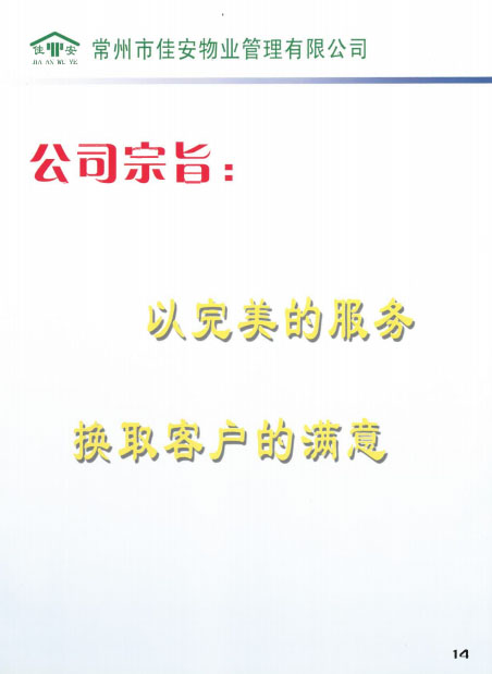 佳安物業(yè)管理有限公司位于常州市新北區(qū)薛家鎮(zhèn),2005年由薛家鎮(zhèn)黨委政府注冊成立,注冊資金50萬元,屬于三級資質(zhì)企業(yè)。成立之初,佳安物業(yè)作為政屬事業(yè)單位,主要負責管理薛家鎮(zhèn)順園新村安置小區(qū)。隨著薛家鎮(zhèn)經(jīng)濟和人口的發(fā)展,為主動適應經(jīng)濟發(fā)展新常態(tài),全面深化物業(yè)綜合改革,打造具有薛家特色的物業(yè)公司,佳安物業(yè)由政府下屬的事業(yè)單位正式轉(zhuǎn)變?yōu)楠毩⑦\營的企業(yè),并增資到1000萬元。 2017年6月,公司通過審核被評為“AAA”級信用企業(yè),同月,公司實施ISO9001質(zhì)量管理體系標準,并于8月通過質(zhì)量體系認證審核。2018年8月,公司通過了ISO14001環(huán)境管理體系、ohsas18001職業(yè)健康安全管理體系的認證審核。 目前,公司主要承接小區(qū)物業(yè)服務及廠區(qū)外派保安服務、保潔服務等,F(xiàn)公司為薛家鎮(zhèn)順園一村至順園九村安置小區(qū)及奧林匹克花園、怡景名園2處商業(yè)小區(qū)提供物業(yè)服務;為江南農(nóng)村商業(yè)銀行新北區(qū)所有支行、中車鐵馬、投資服務中心、華夏藝博園、薛家幼兒園、薛家小學及薛家中學等單位提供外派保安服務;為薛家鎮(zhèn)中心廣場及松林別墅提供保安服務;為華夏藝博園及投資服務中心提供保潔服務等。 在這十余年中,佳安物業(yè)與時俱進,銳意進取,為地方建設發(fā)展注入動力,為居民和企業(yè)安全保駕護航,尤其是在實踐中,我們積極探索,正逐步摸索出一條適合薛家城鄉(xiāng)一體化建設的社區(qū)物業(yè)管理的新路。希望通過今天的分享,和大家一起探討我們在“管辦分離”等方面的實踐經(jīng)驗,并在此基礎上為薛家的可持續(xù)發(fā)展提供可借鑒、推廣的新型物業(yè)管理之路。