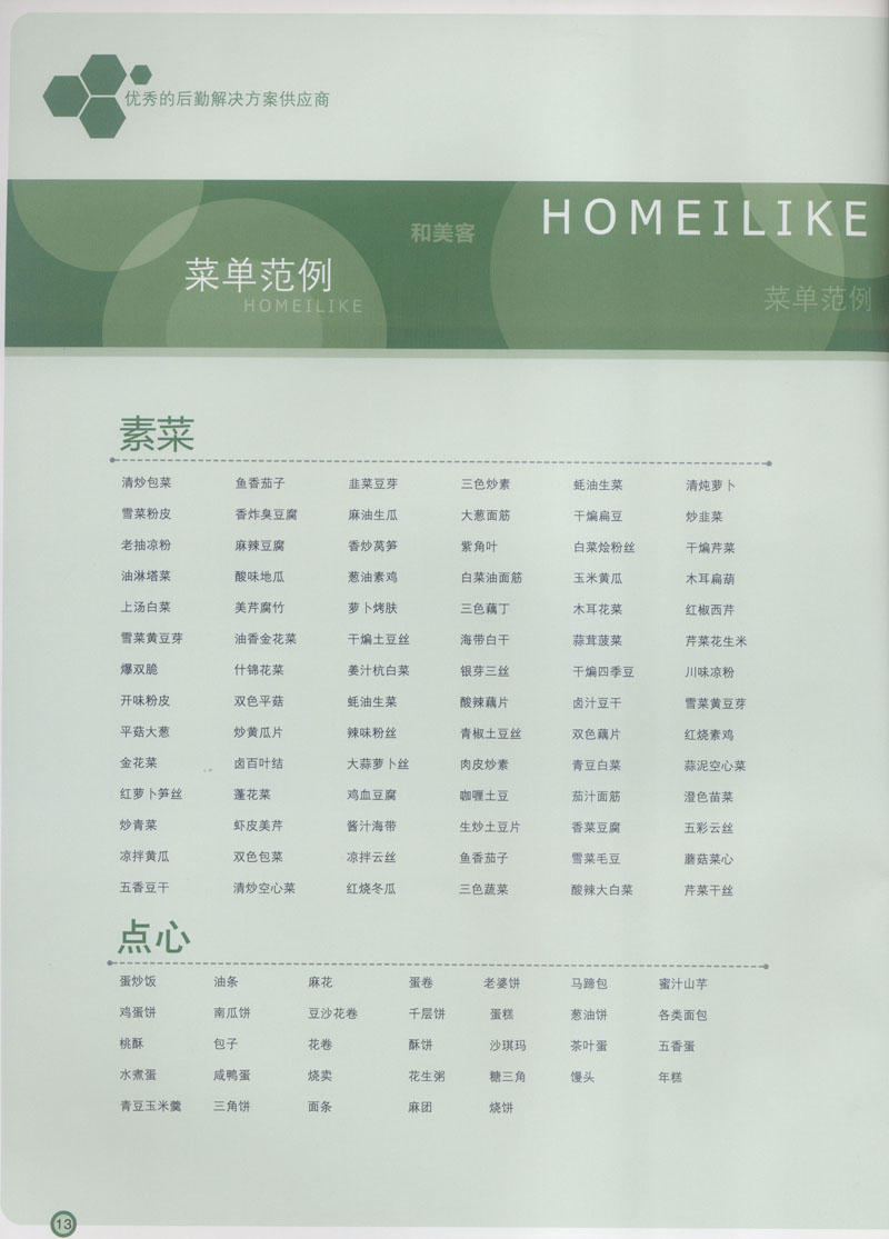 常州市思味特餐飲有限公司是一家專(zhuān)業(yè)從事企事業(yè)后勤服務(wù)的有限責(zé)任公司,公司從承包食堂起步,逐漸發(fā)展為經(jīng)營(yíng)團(tuán)膳承包、營(yíng)養(yǎng)送餐、生活區(qū)管理、連鎖餐廳的綜合型企業(yè)。2008年公司斥資100萬(wàn)元,在常州興建了可以同時(shí)提供3000餐膳食的中央廚房,重點(diǎn)打造“和美客”后勤服務(wù)品牌,全力為企事業(yè)單位解決后勤后顧之憂。 到目前為止,我們合作成功的企事業(yè)單位超過(guò)50多家,服務(wù)人數(shù)突破15萬(wàn),合作單位包括國(guó)家機(jī)關(guān)、國(guó)有企業(yè)、三資企業(yè)、民營(yíng)企業(yè)、學(xué)校、醫(yī)院等,其中不乏國(guó)際知名品牌公司。 和美客愿為更多的國(guó)內(nèi)外企事業(yè)單位及機(jī)關(guān)團(tuán)體分憂解難,從廚房設(shè)計(jì)、菜品配送、團(tuán)膳承包、到生活區(qū)管理等提供全方位的服務(wù)。