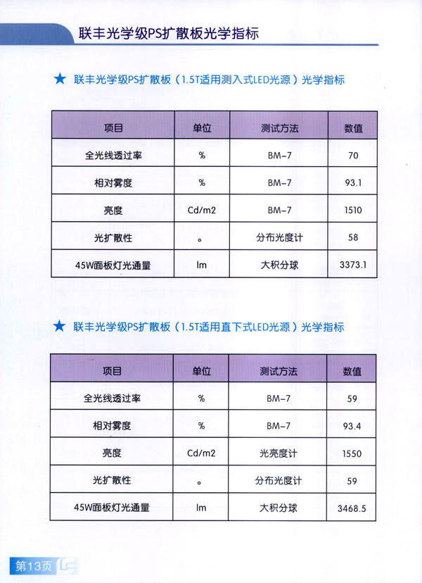常州市聯(lián)豐(鏡面輥)集團(tuán)成立于2000年,是國內(nèi)從事板片材行業(yè)輥筒制造的專業(yè)企業(yè)。聯(lián)豐集團(tuán)全資子公司常州市聯(lián)豐光電科技有限公司成立于2013年6月。聯(lián)豐光電專業(yè)從事光學(xué)級擴(kuò)散板的研發(fā),生產(chǎn)和銷售。擁有各類高級技術(shù)研發(fā)人員10人,生產(chǎn)、管理及銷售人員60人。公司廠房占地面積2萬平方米,工廠擁有十萬級凈化車間,能有效滿足光學(xué)領(lǐng)域擴(kuò)散板生產(chǎn)的環(huán)境要求。公司已經(jīng)申報江蘇省高新技術(shù)企業(yè)。 公司現(xiàn)擁有全新進(jìn)口PS專用擴(kuò)散板材生產(chǎn)線兩條,月生產(chǎn)能力650噸PS擴(kuò)散板。日本進(jìn)口協(xié)榮裁切一體機兩臺,月加工能力50萬片(32寸擴(kuò)散板)。 聯(lián)豐生產(chǎn)的VFP系列PS擴(kuò)散板能廣泛應(yīng)用于直下式LED,CCFL液晶電視背光模組。產(chǎn)品在很多國內(nèi)一線TV的背光模組上使用。產(chǎn)品具有高輝度,高擴(kuò)散性,特別適用于超薄背光模組的擴(kuò)散部件,能有效降低成本,節(jié)約能源。 由于LED照明行業(yè)的興起,公司特別針對于LED面板燈和筒燈開發(fā)的LFP系列擴(kuò)散板,在滿足透光率條件下,能最大限度提高光通量,從而增加燈具的光效,受到廣大客戶的好評。