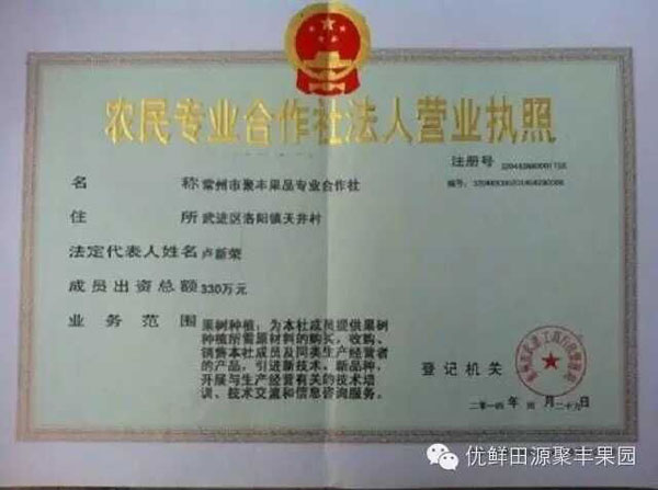 常州市聚豐果品專業(yè)合作社是具有法人資格的農(nóng)民專業(yè)合作經(jīng)濟(jì)組織,成立于2009年,專業(yè)從事水蜜桃、葡萄等時(shí)令果品的生產(chǎn)經(jīng)營服務(wù),現(xiàn)有社員103人。合作社經(jīng)營生產(chǎn)總面積1500畝,中心基地面積130多畝。合作社與科研院校建立有緊密的技術(shù)協(xié)作關(guān)系,擁有各類專業(yè)技術(shù)人員15人,擁有各類資產(chǎn)300多萬元,2014年實(shí)現(xiàn)銷售2588萬元,經(jīng)營收益680多萬元。合作社建有高標(biāo)準(zhǔn)的水蜜桃、葡萄生產(chǎn)基地,對全社成員及周邊廣大農(nóng)戶開展產(chǎn)前產(chǎn)、中產(chǎn)、后全方位的指導(dǎo)和服務(wù)。采用“合作社+基地+農(nóng)戶”的運(yùn)作機(jī)制,進(jìn)行產(chǎn)業(yè)化經(jīng)營。 合作社生產(chǎn)的水蜜桃、葡萄在2013年通過國家綠色食品認(rèn)證, 2013年合作社生產(chǎn)的“常聚”牌湖景水蜜桃在江蘇省第六屆“神農(nóng)杯”優(yōu)質(zhì)水果評比中獲得了銀獎。2012年合作社被常州市工商局和常州市經(jīng)紀(jì)人協(xié)會評為“常州市優(yōu)秀經(jīng)紀(jì)人”。合作社與農(nóng)業(yè)部南京農(nóng)業(yè)機(jī)械研究所、江蘇省農(nóng)科院、93學(xué)社等多家科研學(xué)術(shù)單位建立有緊密技術(shù)協(xié)作關(guān)系。合作社創(chuàng)新理念強(qiáng),果品生產(chǎn)起點(diǎn)高,帶動范圍廣,運(yùn)作規(guī)范,經(jīng)濟(jì)實(shí)力較強(qiáng),擁有豐富的新品種引進(jìn)、開發(fā)實(shí)踐經(jīng)驗(yàn)。