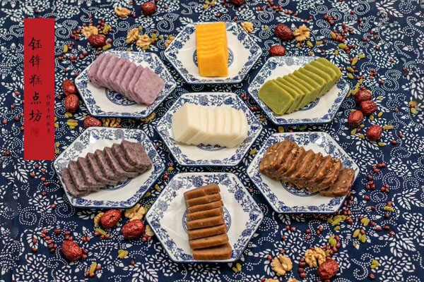 腳踏糕本名“年糕”,按常州周邊地區(qū)的風(fēng)俗習(xí)慣,在春季前夕,各家各戶都要蒸年糕,吃年糕。“糕”諧音“高”,過年吃年糕被賜予“年年高”,一年高一年,鋒吉祥之意,表達(dá)這人們對未來美好生活的憧憬和良好的祝愿。今天小編要帶大家的就是一家至今保持著傳統(tǒng)手工制作的鈺鋒糕點坊。 鈺鋒糕點坊位于常州鄭陸鎮(zhèn)三皇廟范家莊,一個比較偏僻的村莊,雖然這家作坊不大,但香糯絲滑,軟糯適中,韌勁十足的腳踏糕吸引了無數(shù)的食客。制作一條腳踏糕要從淘米,浸泡,碾粉,鋪粉,一層一層的鋪下去,需要無數(shù)道制作工序,這些都是店主孫煥公公老周,憑著幾十年的經(jīng)驗,加上店主孫煥從不馬虎的決心! 這“腳踏”也并非赤腳上陣,而是把蒸好的糕倒入早以準(zhǔn)備好的框子里,用布包裹好,上面再用薄膜包好,再蓋上布,再換上專門腳踏的布鞋,踩的時候要勻稱,左右腳要配合好,不然糕會高高低低,不平整,最后再拿蠟燭線拆成一條小長條,再拿帶包裝好,如此又香又糯的腳踏糕就大功告成了。 店主孫煥為了讓更多的人認(rèn)識和了解常州腳踏糕的傳統(tǒng)文化和美食,她在傳統(tǒng)工藝中增加了適合現(xiàn)代文化的多種口味,她在糕里加入南瓜,紫薯,老紅糖,大麥汁,血糯米,核桃,葡萄干,紅棗等食材,做出五顏六色,純天然的口味,深受食客們的喜愛,不管是送人還是自己吃都非常新穎。 (重陽糕)重陽糕的由來,九九重陽,九是陽數(shù),也是陽數(shù)中最大的數(shù),九月初九,兩九相重,為之重陽,古人有重陽登高的習(xí)俗。高于糕同意,寓意人活九十九,生活步步高,秋景勝春光,夕陽無限好。夕陽紅成了老人對自己美好的祝愿和希望,所以從某種意義上來講它“祝壽糕”“長壽糕”重陽糕在常州地區(qū)是家喻戶曉的,下面小編帶你去一家至今保持傳統(tǒng)手工制作的鈺鋒糕點坊看一下吧。鈺鋒糕點坊位于常州市天寧區(qū)鄭陸鎮(zhèn)三皇廟范家莊,偏僻的小村莊,雖然有點偏僻,但是每到重陽節(jié)到來,每天還是有很多食客來訂購和購買店主孫煥做的多種口味的重陽糕。要想做出松軟香糯的重陽糕,原材料和糯米和梗米的配比也很重要,調(diào)整好比例開始淘米,浸泡,釓粉,放入糖攪拌,篩粉,糕底部放上荷葉,中間的餡心都是孫煥自己熬制,口感,香糯松軟,店主孫煥為了吸引更多現(xiàn)代年輕人,她在粉里加入南瓜,紫薯,紅糖,血糯等,色彩搭配很出跳,吸引來了很多食客,孫煥2019年開始自愿捐贈重陽糕給敬老院,她說這樣的公益活動自己很喜歡,雖然金額不大,缺表達(dá)了她的一份心意,并稱這樣的公益活動她每年都會做。