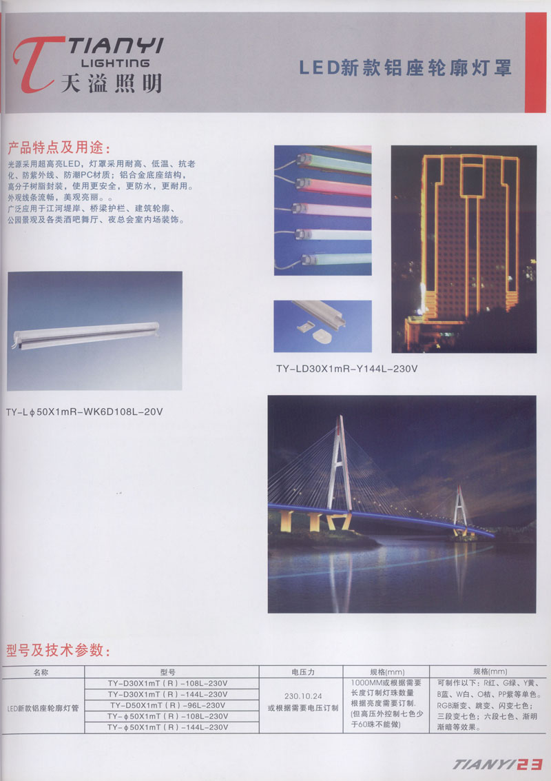 天溢照明是中國領(lǐng)先的專業(yè)從事LED廣告照明裝飾燈具設(shè)計(jì)、系統(tǒng)開發(fā)、燈具制造、工程服務(wù)一體的專業(yè)型公司,本公司產(chǎn)品已廣泛應(yīng)用于全國大多數(shù)城市夜景亮化景觀照明、酒店休閑娛樂夜場(chǎng)夢(mèng)幻燈光、戶內(nèi)外廣告宣傳、建筑及室內(nèi)照明以及家居裝飾等場(chǎng)合。 本公司產(chǎn)品涵蓋景觀裝飾照明、商用照明、居家照明、信息廣告顯示等領(lǐng)域,我們將性能可靠與適中價(jià)格的LED全系列產(chǎn)品帶到世界各個(gè)、角落。
