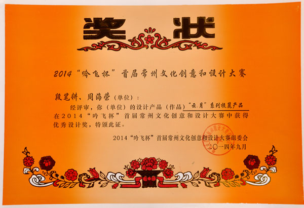 2014吟飛杯首屆常州文化創(chuàng)意和設(shè)計(jì)大賽,虞美人“云,月”系列梳篦產(chǎn)品榮獲優(yōu)秀設(shè)計(jì)獎(jiǎng)