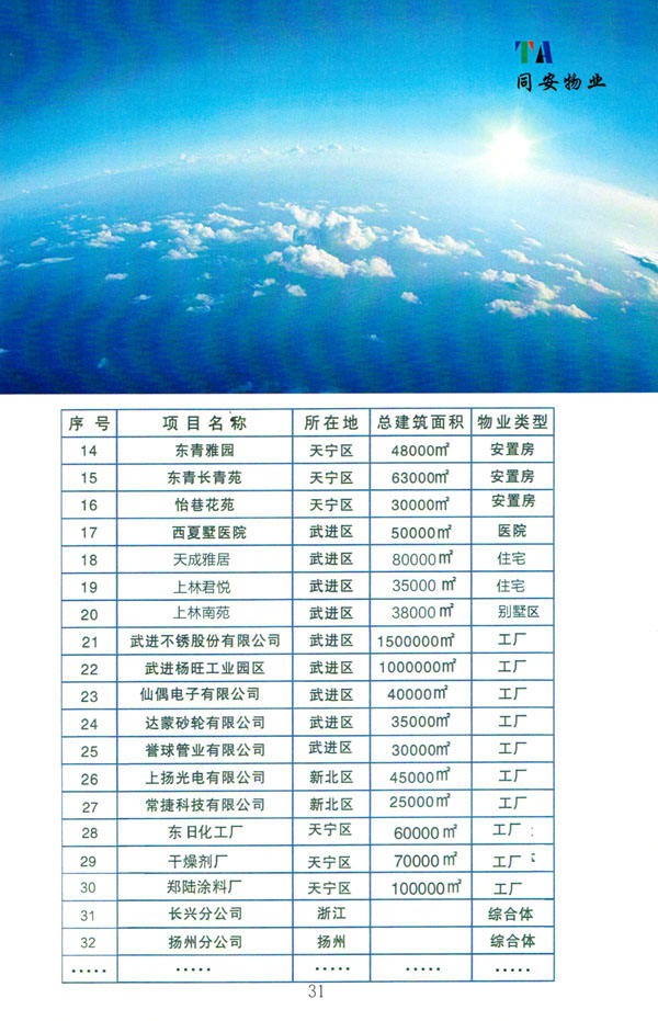 常州市同安物業(yè)管理有限公司注冊(cè)1999年,發(fā)展至今已有多年歷史,本公司坐落于美麗的龍城常州,秉承“融聚無(wú)限未來(lái)”的核心理念,融專業(yè)認(rèn)才,匯優(yōu)質(zhì)資源以”專心,細(xì)心,耐心”的服務(wù)態(tài)度,為客戶打造“安心,順心,稱心”的服務(wù)感受。