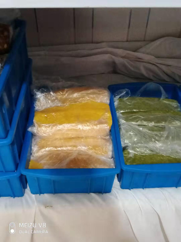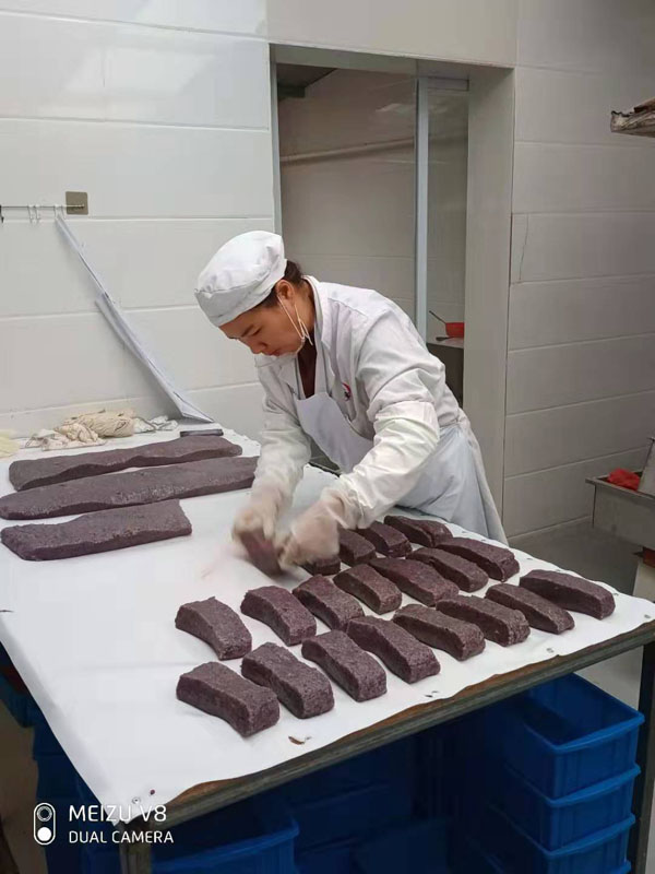 腳踏糕本名“年糕”,按常州周邊地區(qū)的風(fēng)俗習(xí)慣,在春季前夕,各家各戶都要蒸年糕,吃年糕。“糕”諧音“高”,過年吃年糕被賜予“年年高”,一年高一年,鋒吉祥之意,表達(dá)這人們對未來美好生活的憧憬和良好的祝愿。今天小編要帶大家的就是一家至今保持著傳統(tǒng)手工制作的鈺鋒糕點(diǎn)坊。 鈺鋒糕點(diǎn)坊位于常州鄭陸鎮(zhèn)三皇廟范家莊,一個(gè)比較偏僻的村莊,雖然這家作坊不大,但香糯絲滑,軟糯適中,韌勁十足的腳踏糕吸引了無數(shù)的食客。制作一條腳踏糕要從淘米,浸泡,碾粉,鋪粉,一層一層的鋪下去,需要無數(shù)道制作工序,這些都是店主孫煥公公老周,憑著幾十年的經(jīng)驗(yàn),加上店主孫煥從不馬虎的決心! 這“腳踏”也并非赤腳上陣,而是把蒸好的糕倒入早以準(zhǔn)備好的框子里,用布包裹好,上面再用薄膜包好,再蓋上布,再換上專門腳踏的布鞋,踩的時(shí)候要?jiǎng)蚍Q,左右腳要配合好,不然糕會(huì)高高低低,不平整,最后再拿蠟燭線拆成一條小長條,再拿帶包裝好,如此又香又糯的腳踏糕就大功告成了。 店主孫煥為了讓更多的人認(rèn)識和了解常州腳踏糕的傳統(tǒng)文化和美食,她在傳統(tǒng)工藝中增加了適合現(xiàn)代文化的多種口味,她在糕里加入南瓜,紫薯,老紅糖,大麥汁,血糯米,核桃,葡萄干,紅棗等食材,做出五顏六色,純天然的口味,深受食客們的喜愛,不管是送人還是自己吃都非常新穎。 (重陽糕)重陽糕的由來,九九重陽,九是陽數(shù),也是陽數(shù)中最大的數(shù),九月初九,兩九相重,為之重陽,古人有重陽登高的習(xí)俗。高于糕同意,寓意人活九十九,生活步步高,秋景勝春光,夕陽無限好。夕陽紅成了老人對自己美好的祝愿和希望,所以從某種意義上來講它“祝壽糕”“長壽糕”重陽糕在常州地區(qū)是家喻戶曉的,下面小編帶你去一家至今保持傳統(tǒng)手工制作的鈺鋒糕點(diǎn)坊看一下吧。鈺鋒糕點(diǎn)坊位于常州市天寧區(qū)鄭陸鎮(zhèn)三皇廟范家莊,偏僻的小村莊,雖然有點(diǎn)偏僻,但是每到重陽節(jié)到來,每天還是有很多食客來訂購和購買店主孫煥做的多種口味的重陽糕。要想做出松軟香糯的重陽糕,原材料和糯米和梗米的配比也很重要,調(diào)整好比例開始淘米,浸泡,釓粉,放入糖攪拌,篩粉,糕底部放上荷葉,中間的餡心都是孫煥自己熬制,口感,香糯松軟,店主孫煥為了吸引更多現(xiàn)代年輕人,她在粉里加入南瓜,紫薯,紅糖,血糯等,色彩搭配很出跳,吸引來了很多食客,孫煥2019年開始自愿捐贈(zèng)重陽糕給敬老院,她說這樣的公益活動(dòng)自己很喜歡,雖然金額不大,缺表達(dá)了她的一份心意,并稱這樣的公益活動(dòng)她每年都會(huì)做。