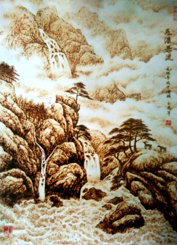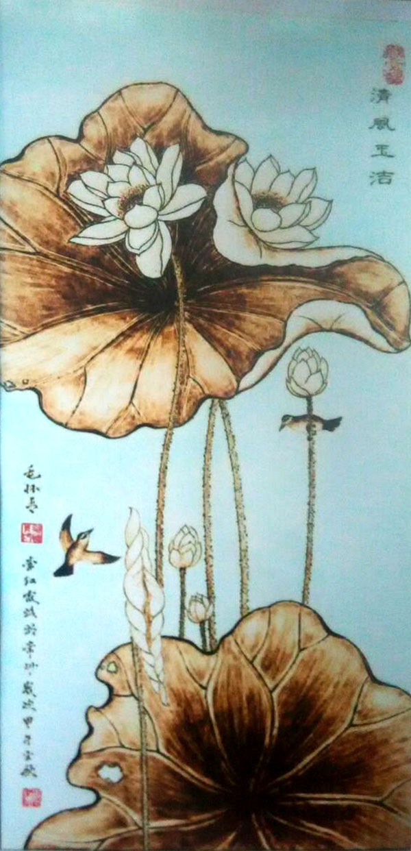 年輕時學(xué)習(xí)國畫、油畫中年蔓現(xiàn)掌州咯畫源遠流長、歷史悠久,有著其它美術(shù)門類不具備的藝術(shù)風(fēng)格與特色?芍^是工藝美術(shù)中的一朵十分亮麗的藝術(shù)奇葩,是我民族先人給我們留下的一份不可多得十分珍貴的一份文化遺產(chǎn)。為弘揚與發(fā)展這份優(yōu)秀文化遺產(chǎn),我從此下定決心研究烙畫,愿付出一份力量為振興烙畫事業(yè)做出貢獻。至今已潛心研究幾十年,取得了可喜的成績,被業(yè)界公認,社會關(guān)注與認可。有“江南烙畫第一筆”之美譽。